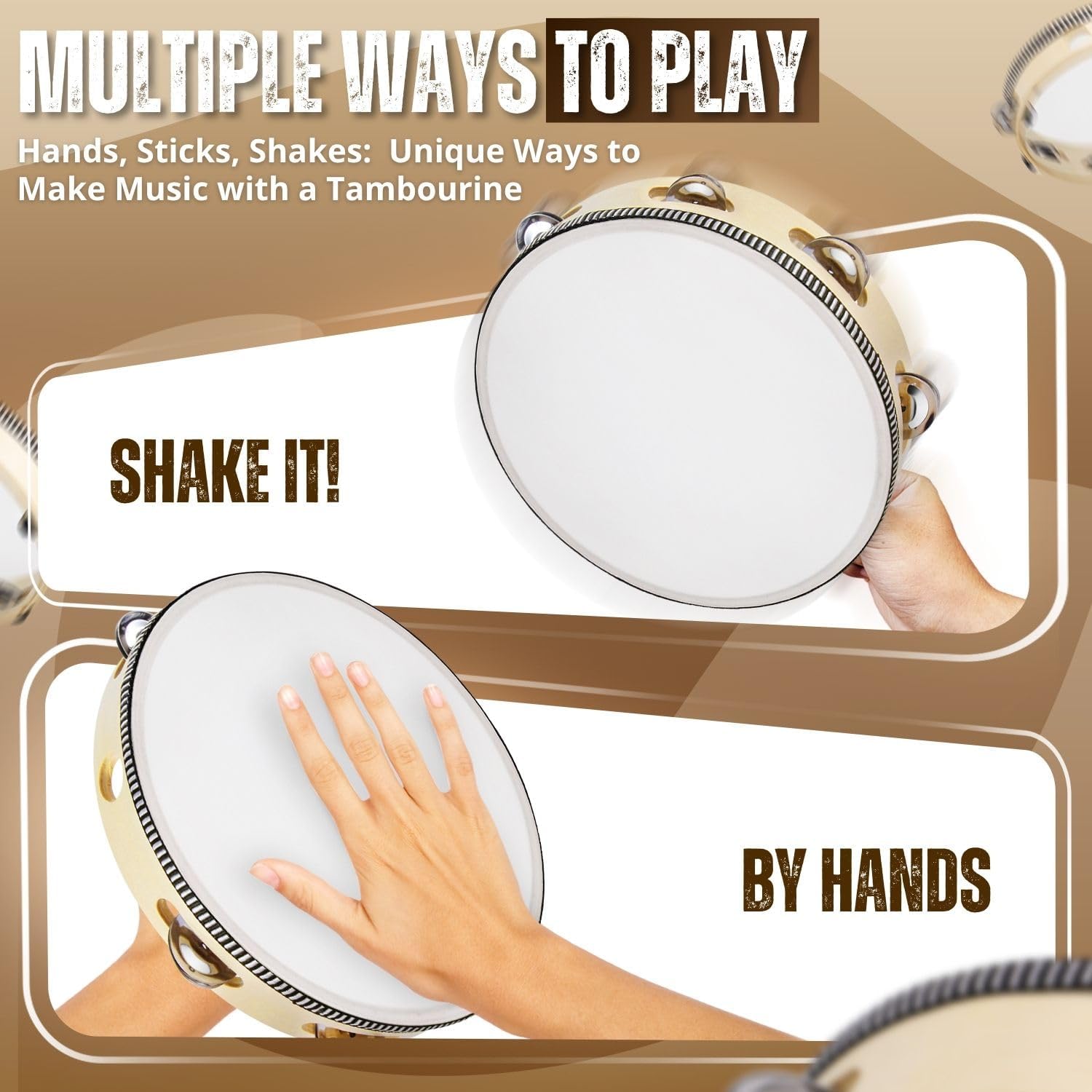 - Elevate your Music: Our tambourines for adults and kids have 8 pairs of single-row metal jingles that produce a crisp, clear sound; the tambourine is one of the musical instruments that adds depth and complexity to your music