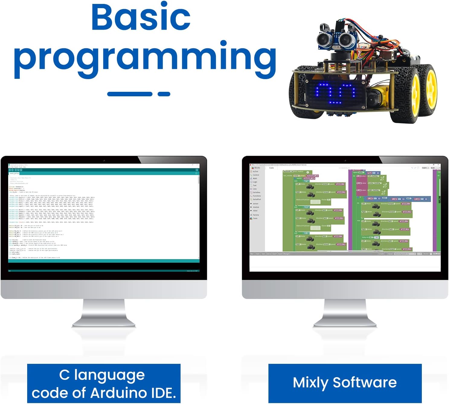 KEYESTUDIO Smart Car Robot,4WD Programmable DIY Starter Kit for Arduino for Uno R3,Electronics Programming Project/STEM Educational/Science Coding Kit for Teens Adults,15+