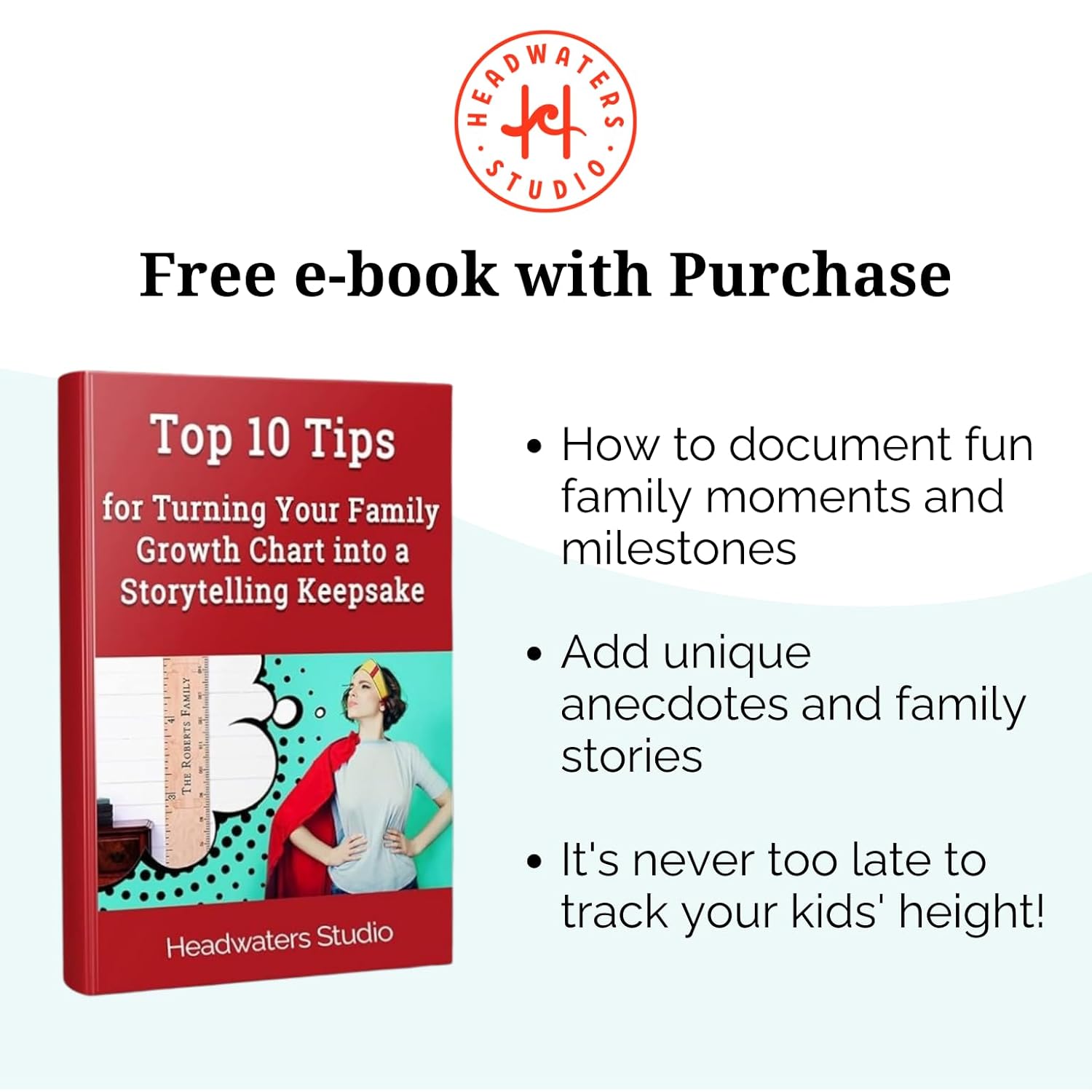 - PERSONALIZED FAMILY HEIGHT CHART - Treasure the growth milestones with our height measurement for wall and wooden ruler growth chart. Hang this height stick for kids easily in any room and note down memorable quotes and actions, turning it into a precious family keepsake. Ideal for recording growth chart for wall wood.