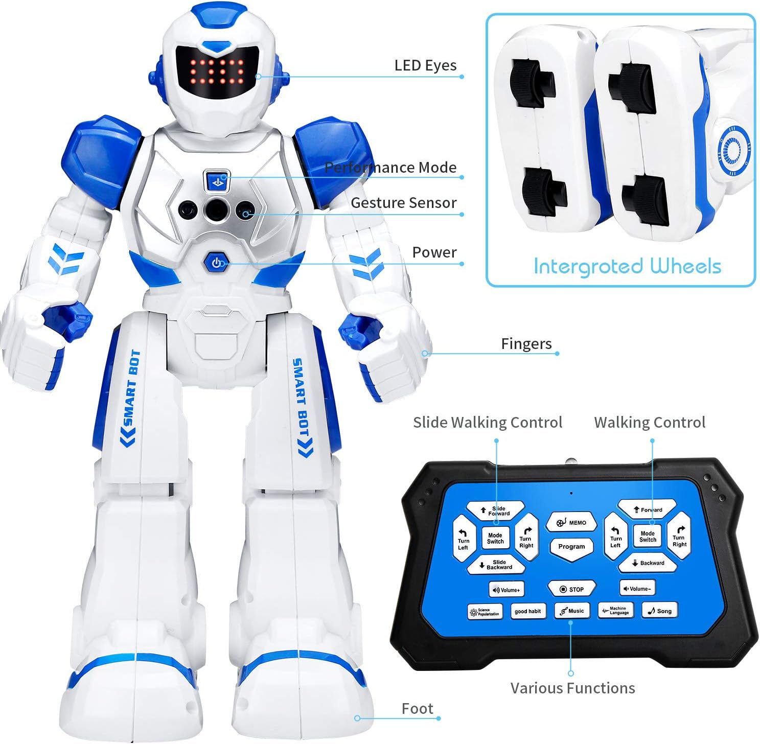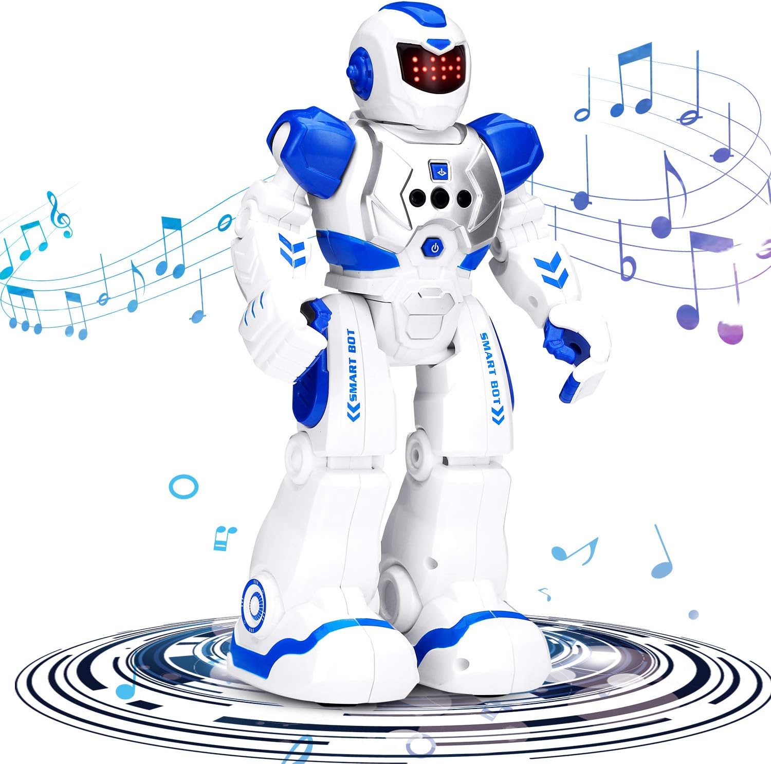 - Singing and Dancing:This smart programmable Robot sings a number of songs and dances to the beat;Robot also talks! There is a volume control feature on the remote to control music and talking volume;