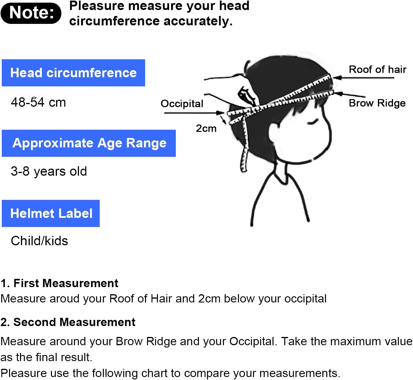 - Kids bike helmet: Suitable for 3-8 years old kids and toddlers with helmet size: 48-54 cm / 18.9-21.3". This kids bike helmet is easily adjustable for a snug fit, it could grow with your child for few years.