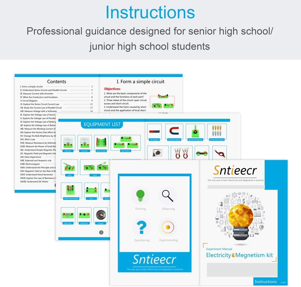 - GREAT PRESENT: The electronics kit is a great present for students over 8 years to further understand the basic principles, learn the basic electromagnetic experiments through our instructions, they can explore freely, open their mind, to think, to do what they want to know by experiment