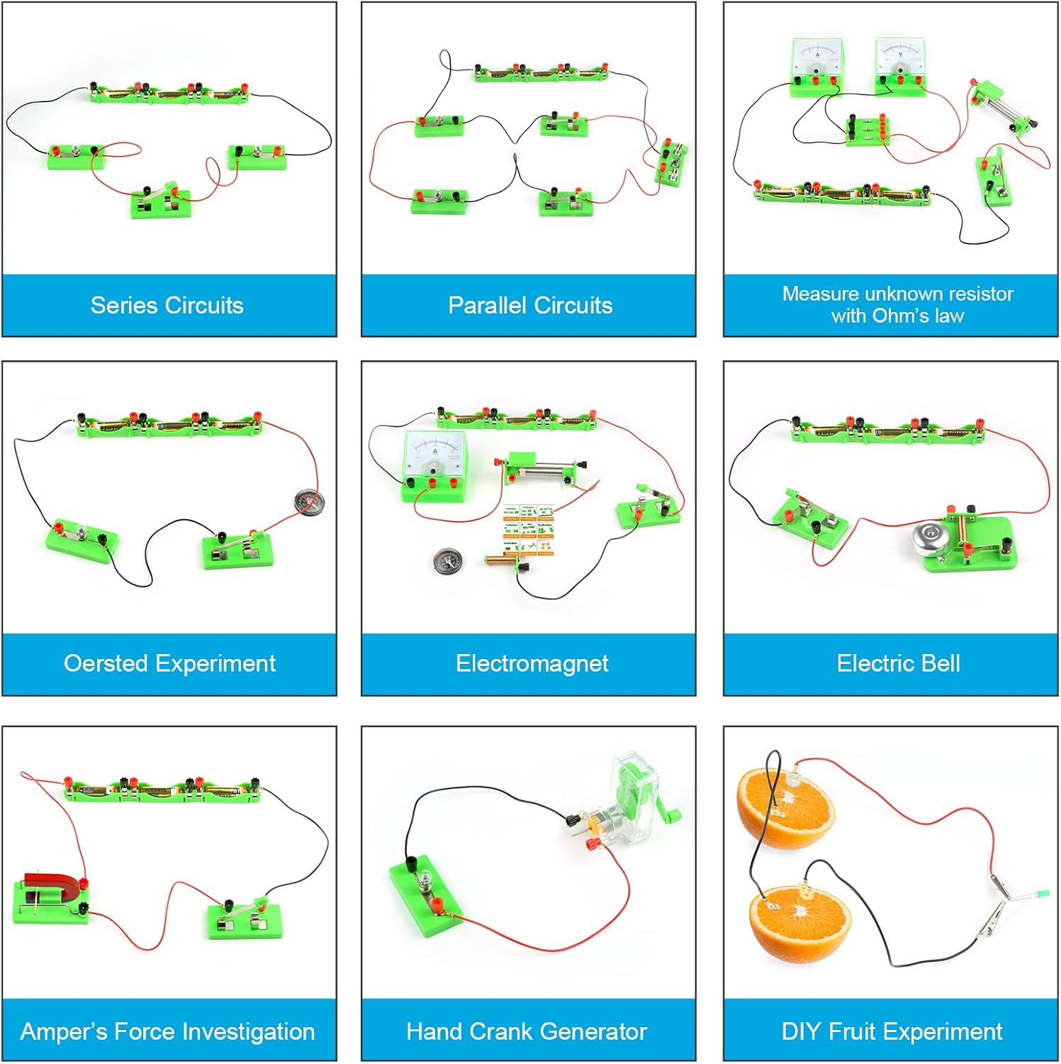 - WIDE APPLICATION: The basic circuit learning STEM kit can build many different projects, such as Series Circuits, Parallel Circuits, Hand Generator, Oster Experiment, Ohm’s Law, Solenid and Ampere’s Rule, etc. Board games for kids can well catch kids attention and let the them try to build, experiment and explore basic electrical simple circuits, easy to meet kids project needs, properly educating some circuit knowledge would be a good interaction time with your kids together