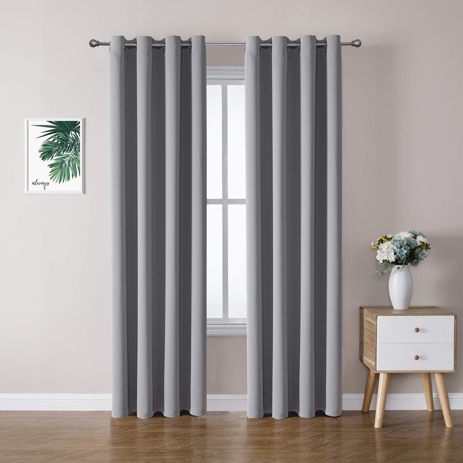 ChrisDowa Grommet Blackout Curtains for Bedroom and Living Room - 2 Panels Set Thermal Insulated Room Darkening Curtains (Light Grey, 52 x 84 Inch)