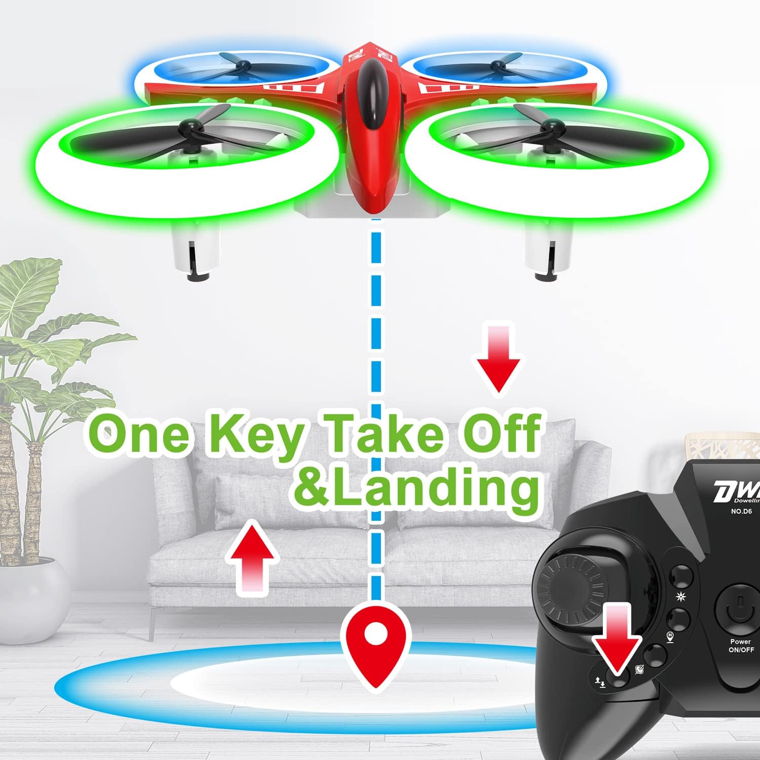 Dwi Dowellin 4.9 Inch Mini Drone for Kids Crash Proof LED Lights One Key Take Off Landing Flips RC Remote Control Small Drones Toys for Beginners Boys and Girls Adults Nano Quadcopter, Red
