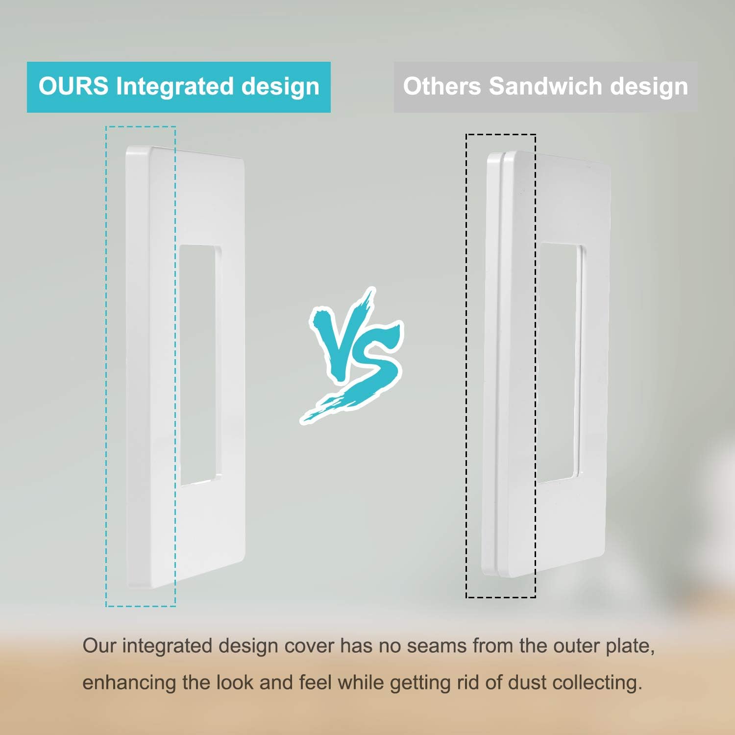 - Modern design enhances the look and feel of your house. Smooth finish makes it easy to clean. you will not find any ugly excess trim on the corners of your switch plate!