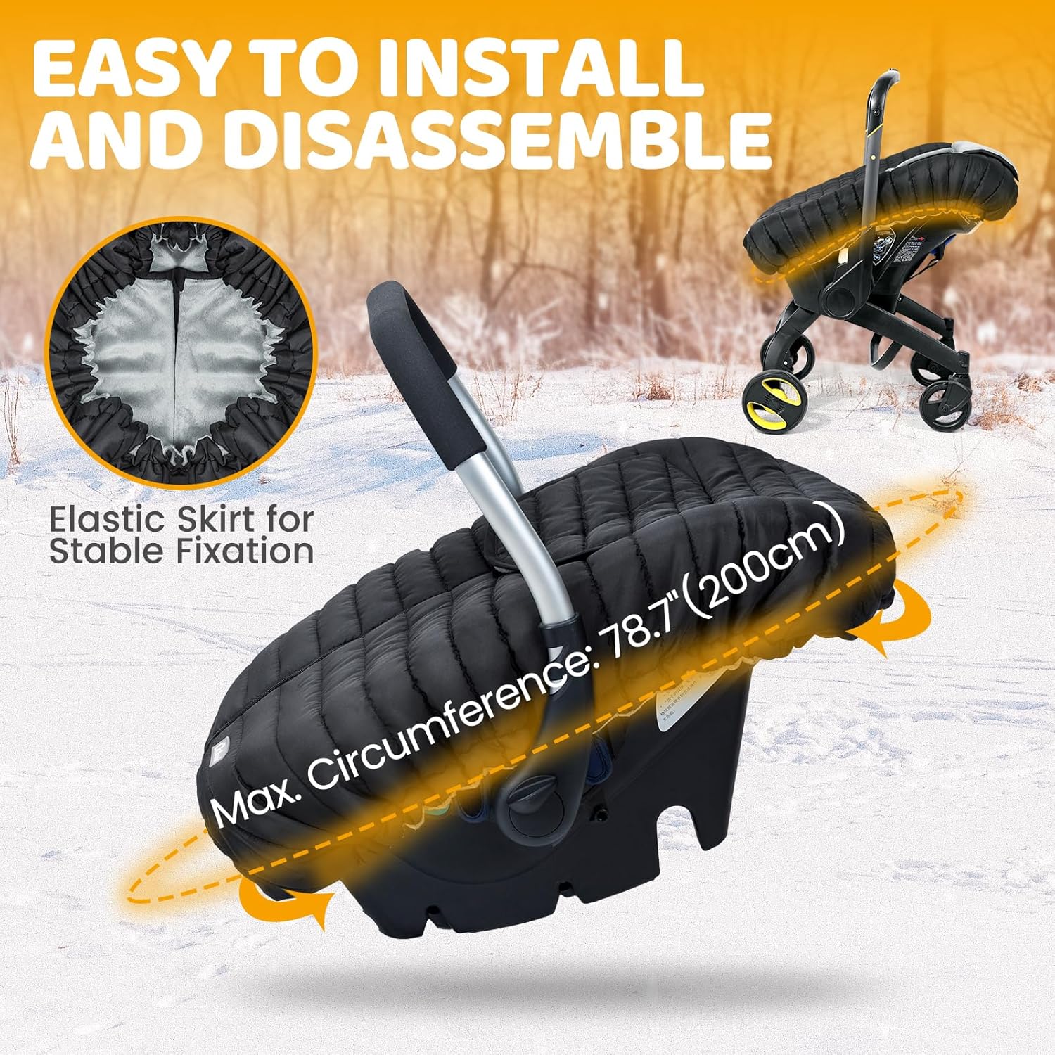 - 𝗦𝗔𝗙𝗘𝗧𝗬 𝗮𝗻𝗱 𝗖𝗢𝗡𝗩𝗘𝗡𝗜𝗘𝗡𝗖𝗘 𝗗𝗘𝗦𝗜𝗚𝗡: The Orzbow Car Seat Cover front zipper design makes it easy to put baby in and out and the breathable pull-over flap shield provides baby's face with additional coverage and protection when needed in unfavorable weather conditions