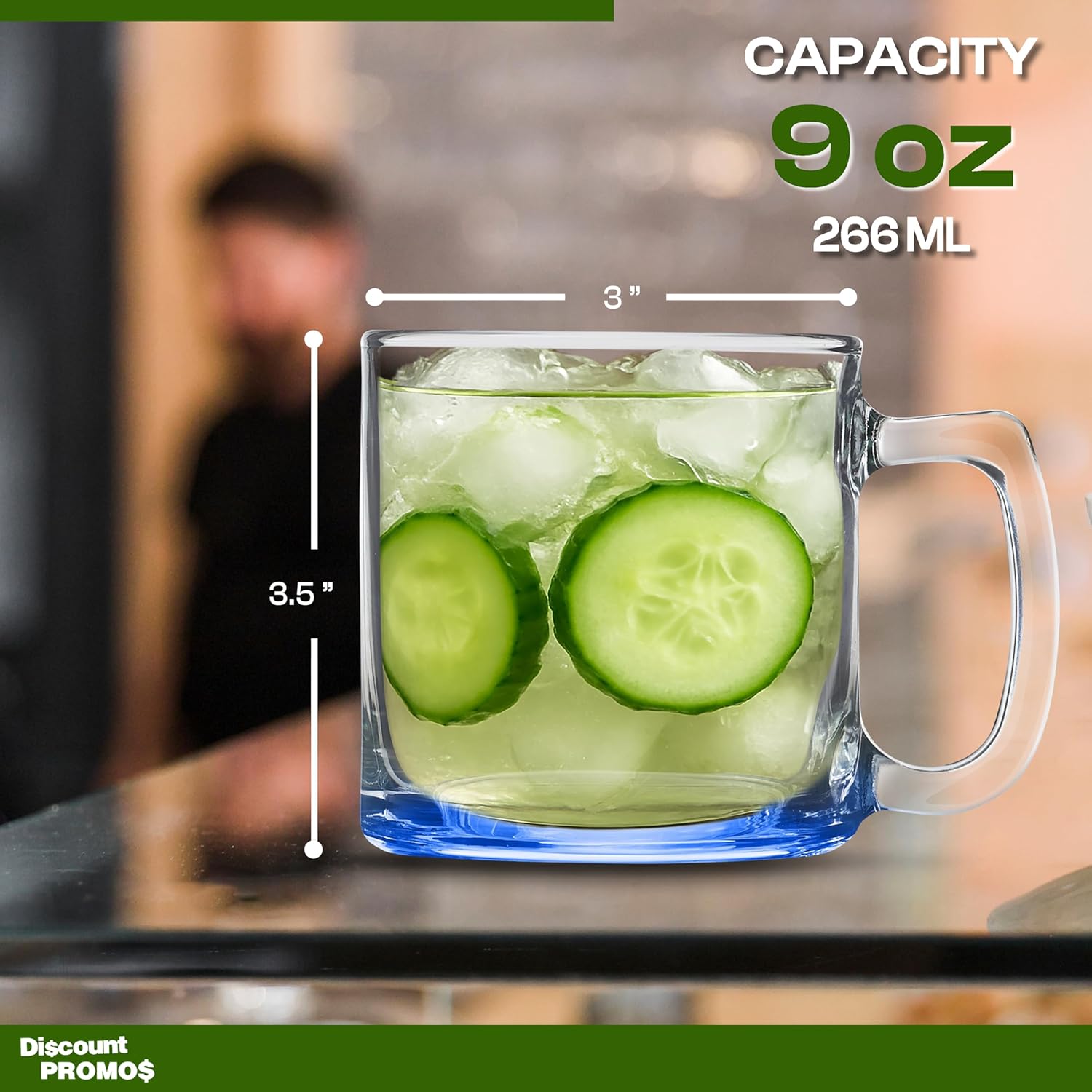 DISCOUNT PROMOS Small Glass Coffee Mugs 9 oz. Set of 10, Bulk Pack - Perfect for Coffee, Tea, Espresso, Hot Cocoa, Other Beverages - Blue