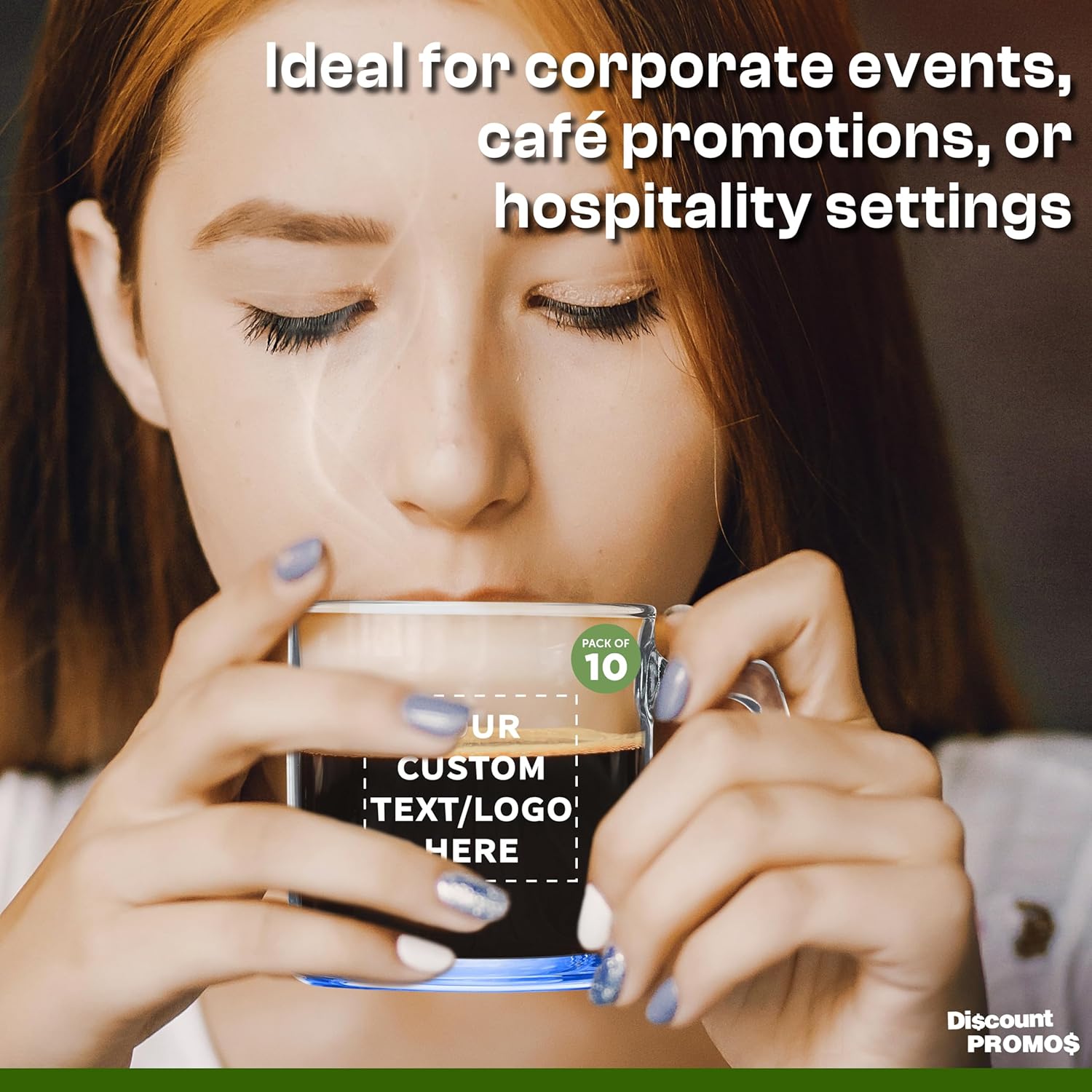 DISCOUNT PTOMOS Custom Small Glass Coffee Mugs 9 oz. Set of 10, Personalized Bulk Pack - Perfect for Coffee, Tea, Espresso, Hot Cocoa, Other Beverages - Blue