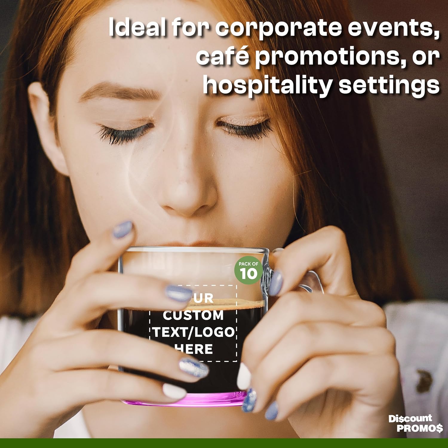 DISCOUNT PTOMOS Custom Small Glass Coffee Mugs 9 oz. Set of 10, Personalized Bulk Pack - Perfect for Coffee, Tea, Espresso, Hot Cocoa, Other Beverages - Pink