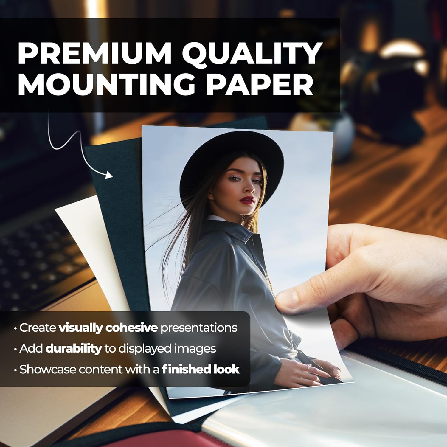 - For a Finished Look: Use acid-neutral black mounting paper to showcase your 4 x 6 digital prints, portraits, pictures, art cards, sketches, postcards with flair.