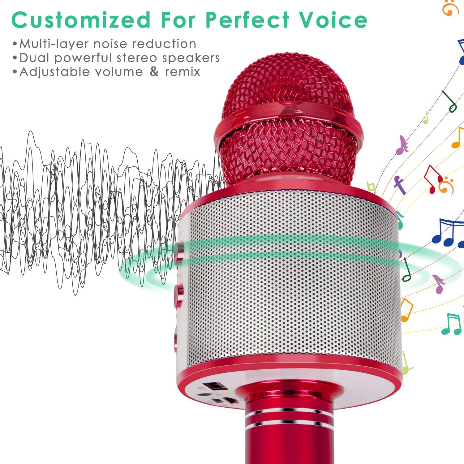KIDWILL Wireless Bluetooth Karaoke Microphone for Kids, 5-in-1 Portable Handheld Karaoke Mic Speaker Player Recorder with Adjustable Remix FM Radio for Kids Girls Boys Teens Birthday (Red)