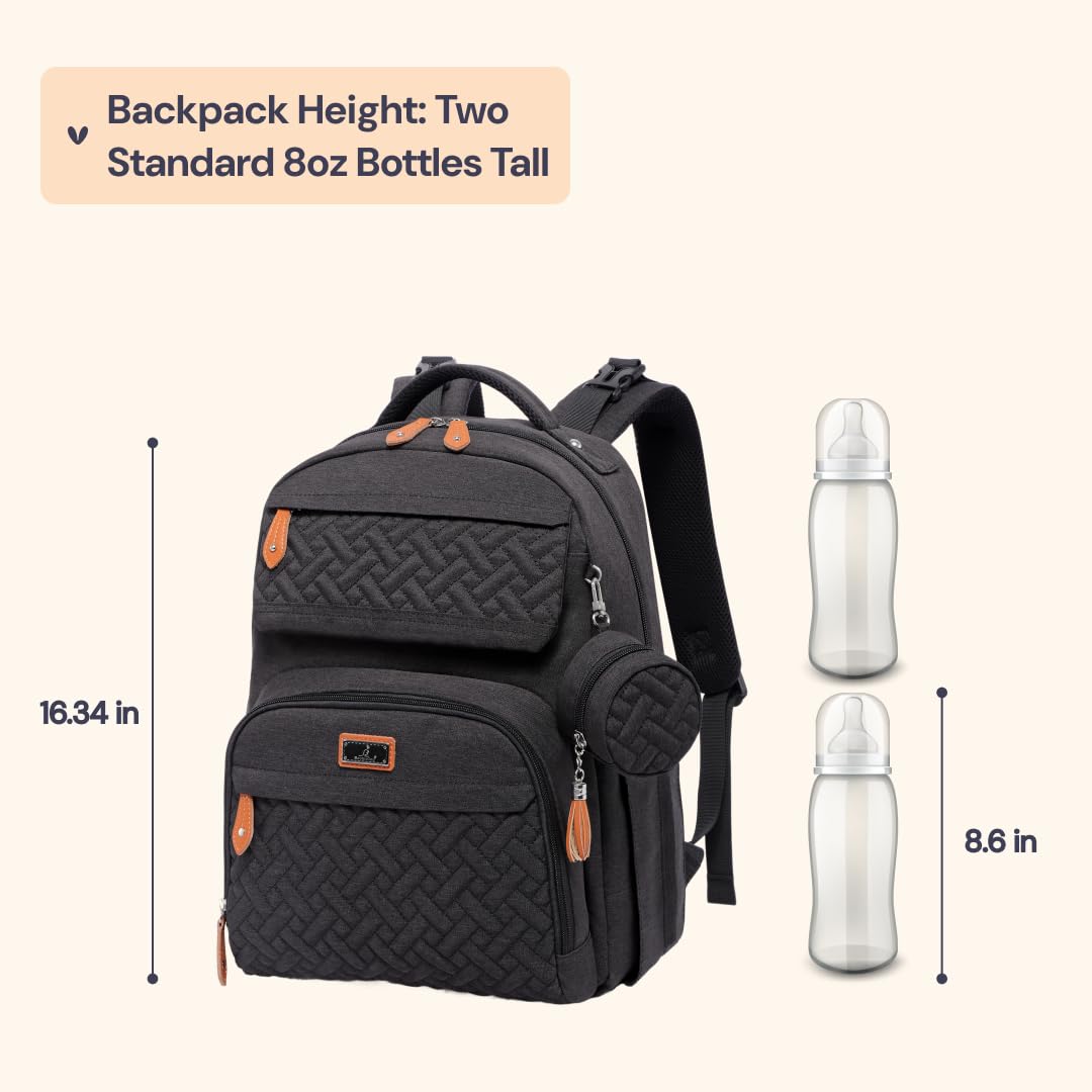 - Tons of Storage – BabbleRoo baby diaper bag has tons of spaces to hold Baby Stuff, plus some for mom and dad! Baby bag includes 2 main compartments, 5 insulated pockets (Fit for All Major Baby Bottles), a wipe pocket, a key loop, and a dedicated multi-function changing pad pocket holds tablets and laptops up to 15.6". Multiple pockets with easy-glide zippers makes this nappy changing backpack easily accessible with one hand.