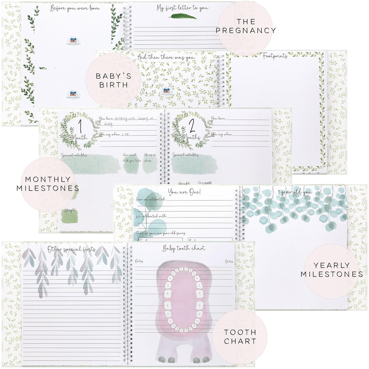 Baby Memory Book First 5 Years - Keepsake Monthly Milestone Journal for Boy or Girl - Pregnancy Gift for Baby Shower - Gender Neutral Record Book with Gift Box - Personalize Cover with Baby Photo