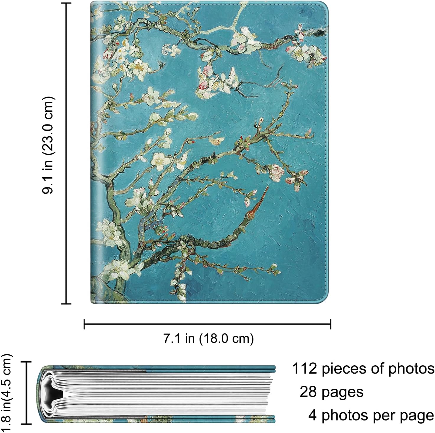 - Hold 112 photos in total. This album contains 28 individual pages with 2 inserts per side [4 photos per page], opens like a book for easy viewing. Designed with insert pocket for credit cards and name cards. Best for weddings, engagements, graduations, baby photos or other arty obsessions.
