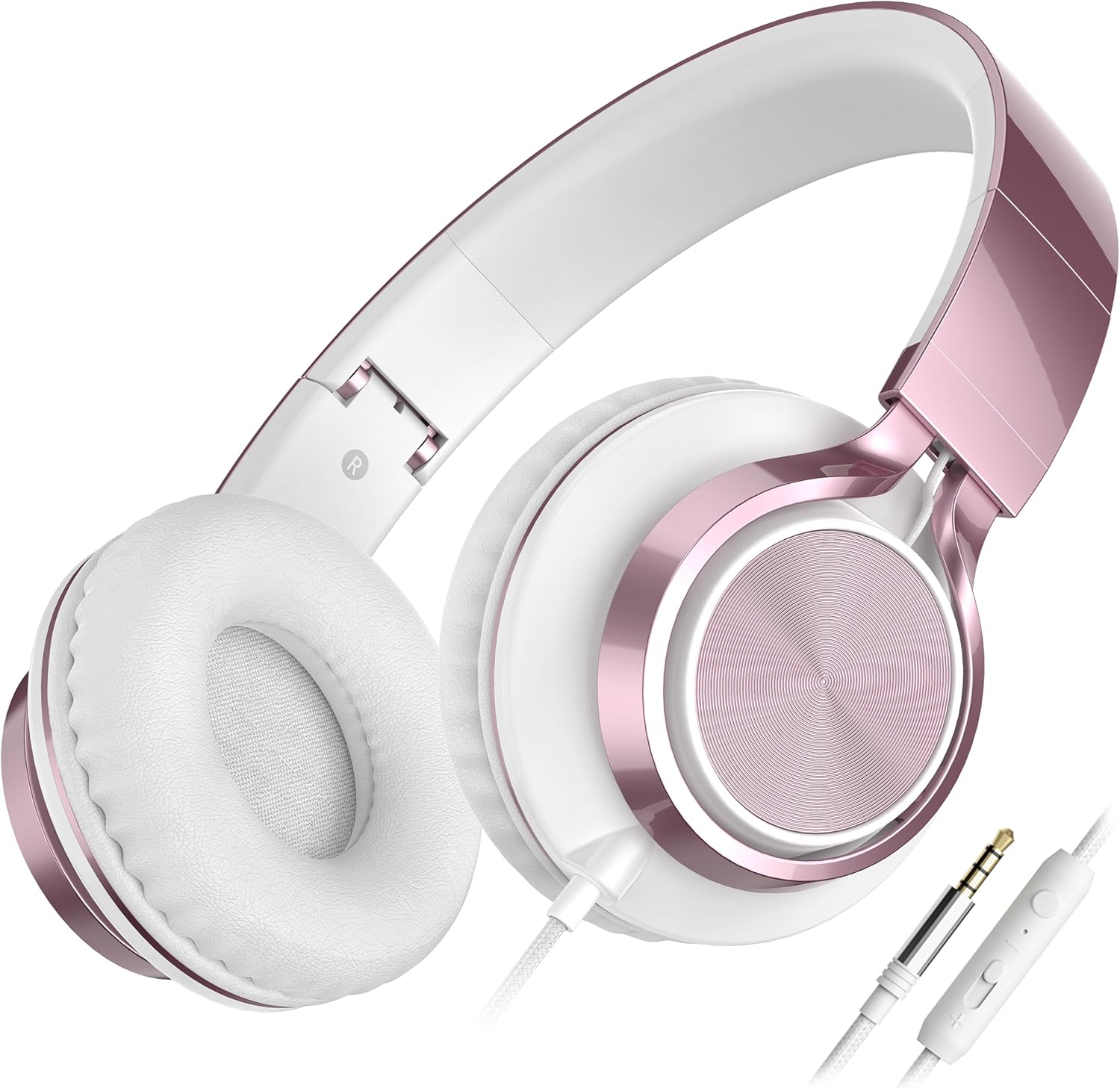 AILIHEN C8 Girls Headphones, On-Ear Headphones Wired with Microphone and Volume Control Foldable Corded Stereo 3.5mm Headset for Girls School Chromebook Laptop Computer PC Tablets Travel (Rose Gold)