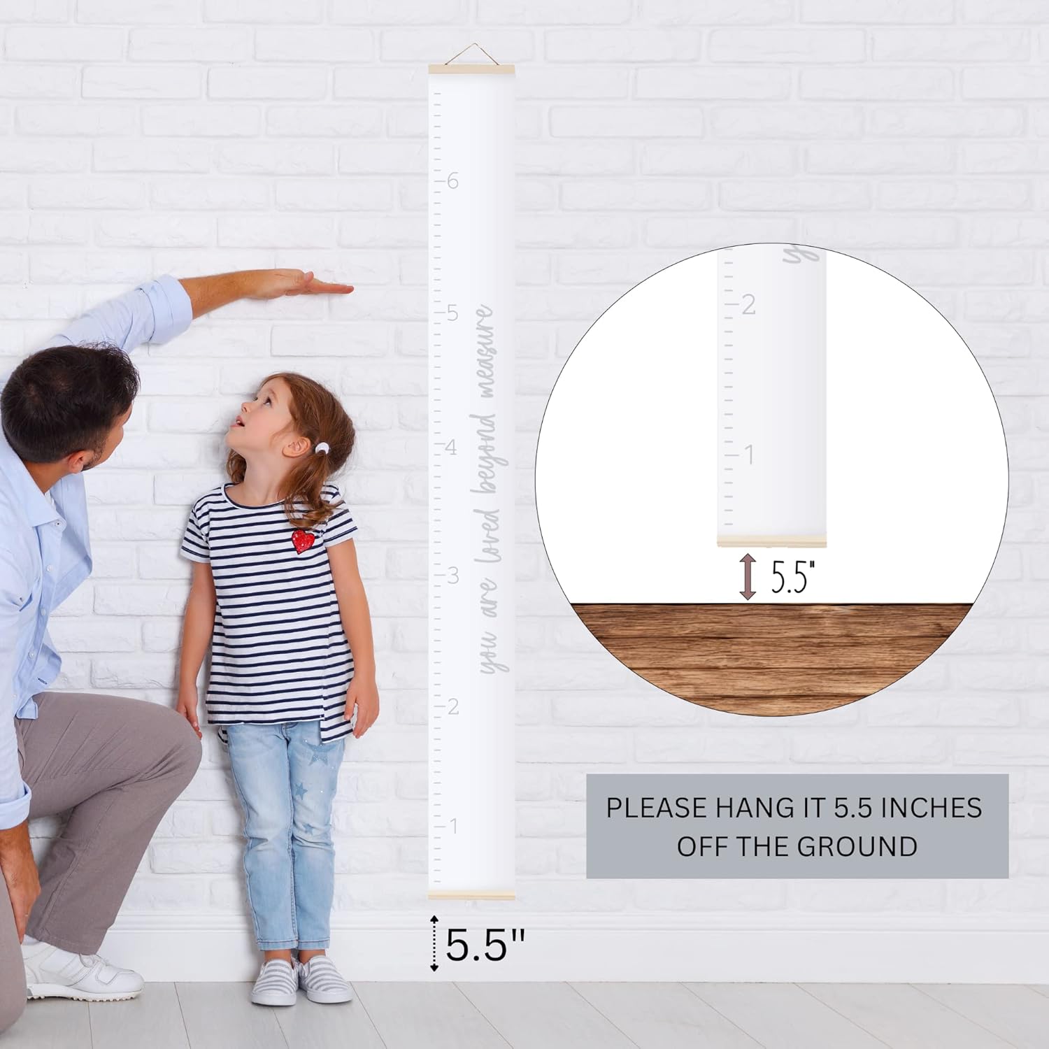 Morxy Canvas Growth Chart for Kids - Unisex Kids Room Wall Decor - Measuring Height Chart- Wall Tape with Height Chart for Kids (Canvas Loved Beyond Measure, White)