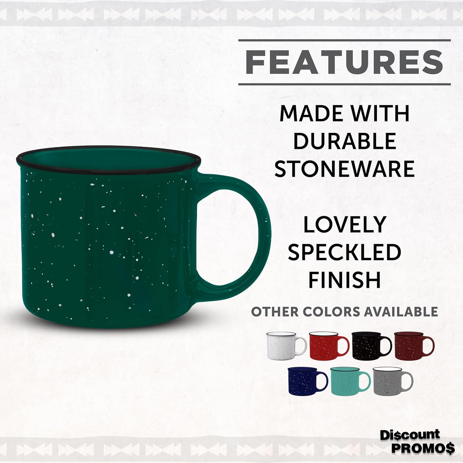 DISCOUNT PROMOS Ceramic Campfire Coffee Mugs 13 oz. Set of 10, Bulk Pack - Perfect for Tea, Espresso, Cappuccino, Hot Cocoa - Green