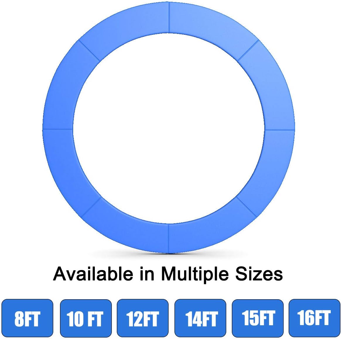 - [ Easy to Assemble & Replace ] Our 8 Ft trampoline safety pad has a folding design, which helps to reduce a lot of tedious assembly steps. All you need to do is lay it flat on the trampoline and fix the 18 elastic ropes. The simple replacement process will not waste your too much time and energy.