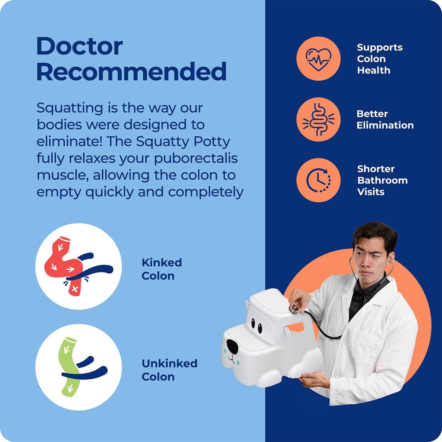 - The #1 Way to #2 – Human bodies perform more efficiently if we squat instead of sit when we poop. Squatty Potty toilet stools help kids reduce strain and time spent on the toilet.