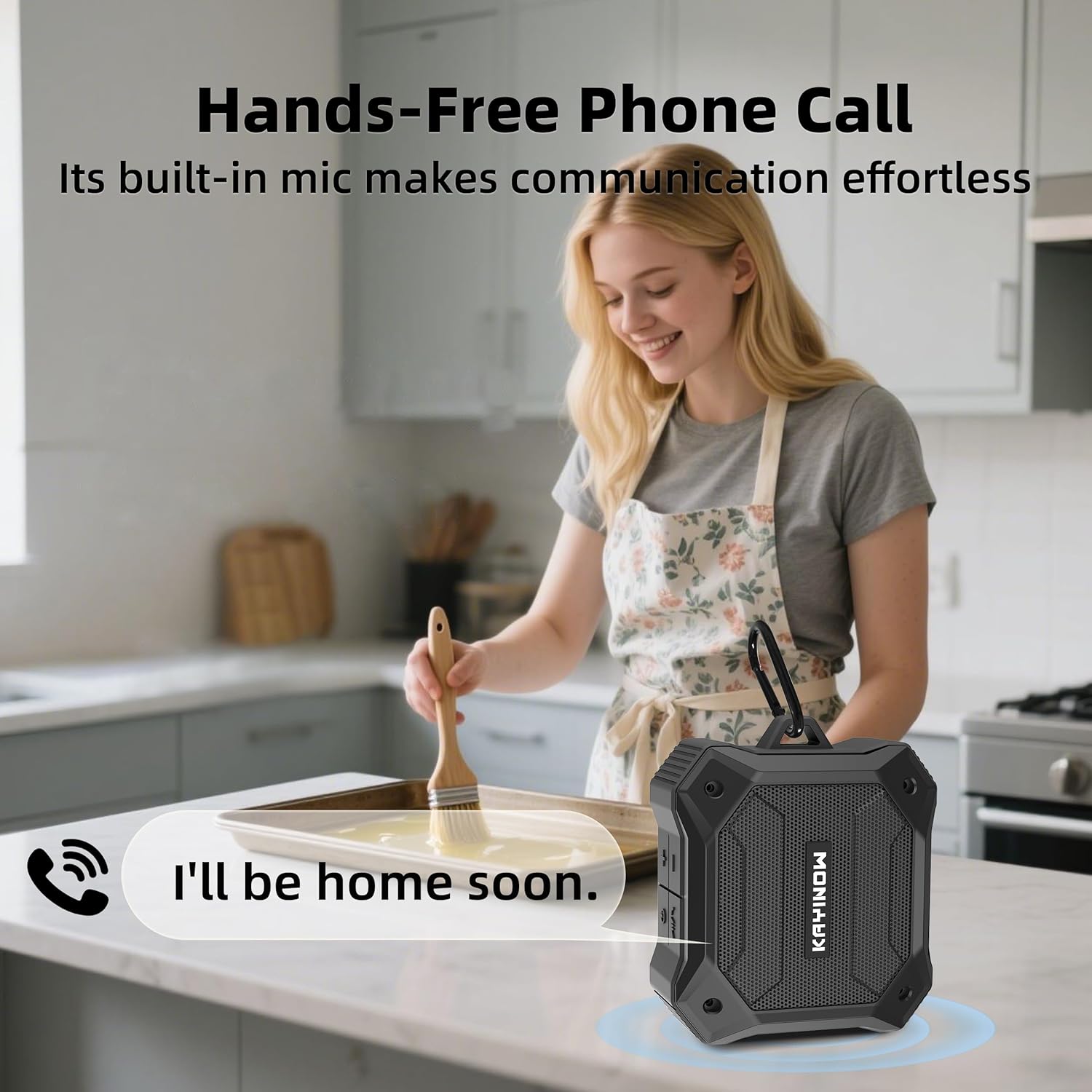 - [Exceptional Sound Quality+Hands-Free Calling]: This outstanding mini Bluetooth speaker features a high-performance diaphragm, delivering powerful 5W bass and crystal-clear sound quality. Pair two speakers (sold separately) to activate TWS mode and enjoy immersive 360° surround sound. The built-in microphone supports hands-free calling, allowing you to chat freely without picking up your phone. Even in noisy outside environments or the bathroom, you won't miss important calls