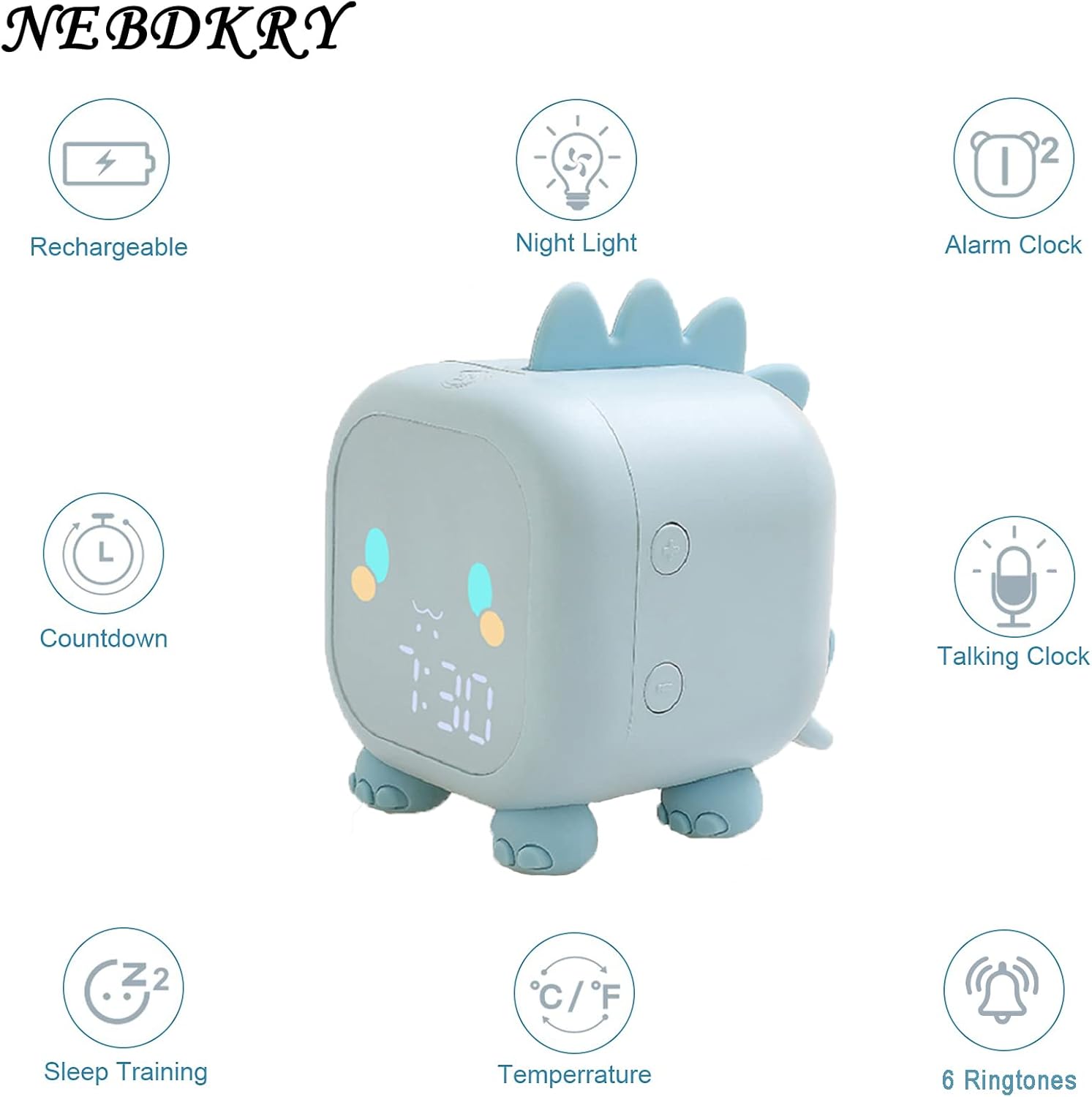 - [SLEEP TRAINING CLOCK]: The cute dinosaur-designed alarm clock uses environmentally friendly and safe silicone material, which feels soft and comfortable. The alarm clock with soft colorful lights,it is a must choice for training children to develop good sleeping habits.