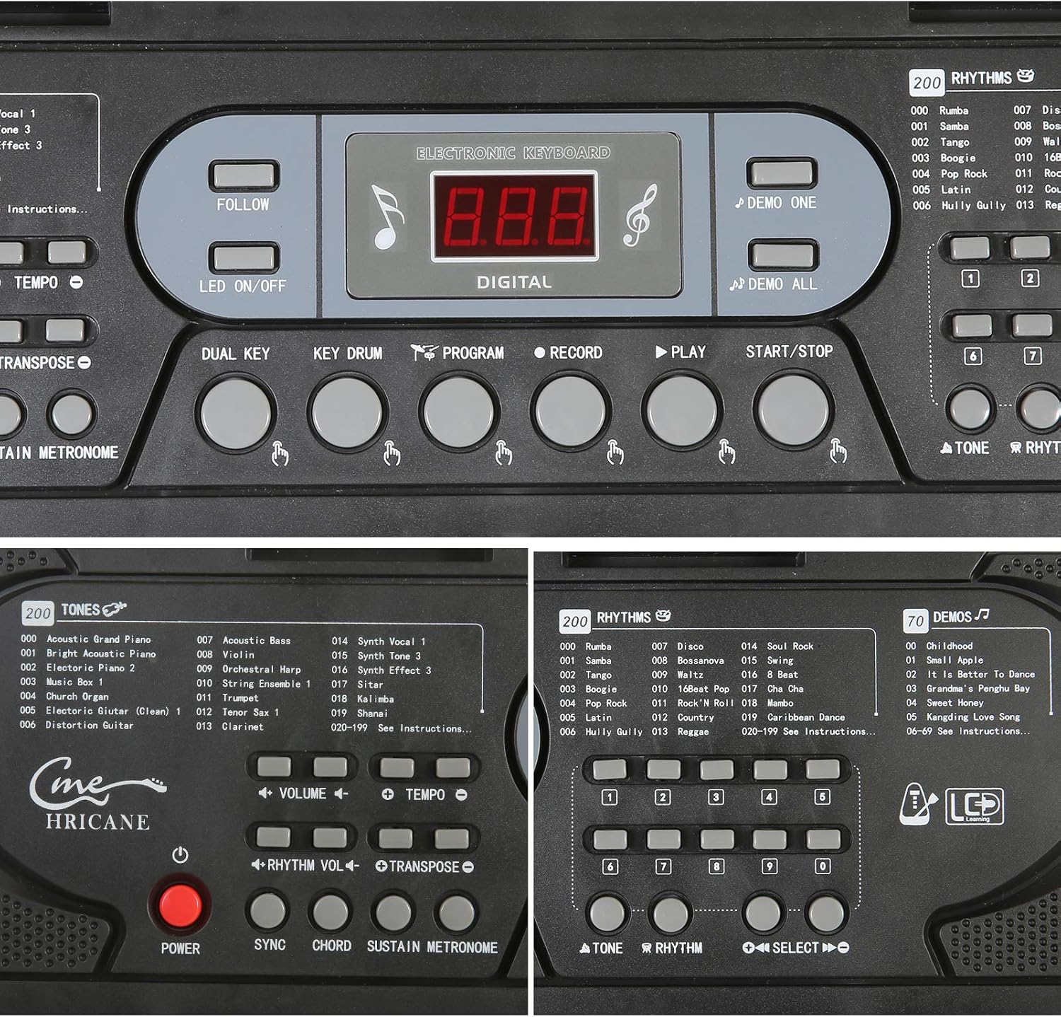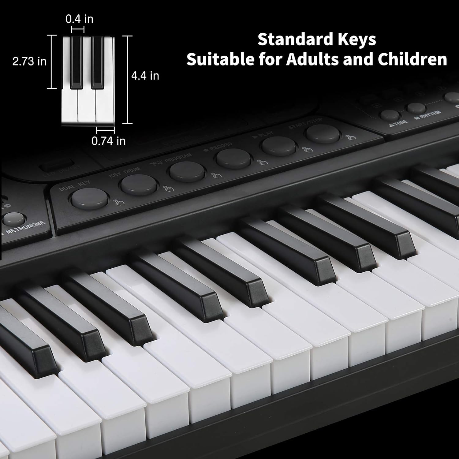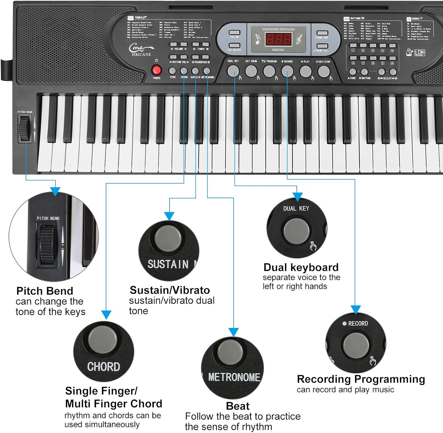 - 【Perfect for Beginners】 Hricane 61-key electronic keyboard is perfect for beginners and players of all skill levels, and made for kids and adults alike. The attached keyboard sticker can help beginners familiarize themselves with the position of the scale.
