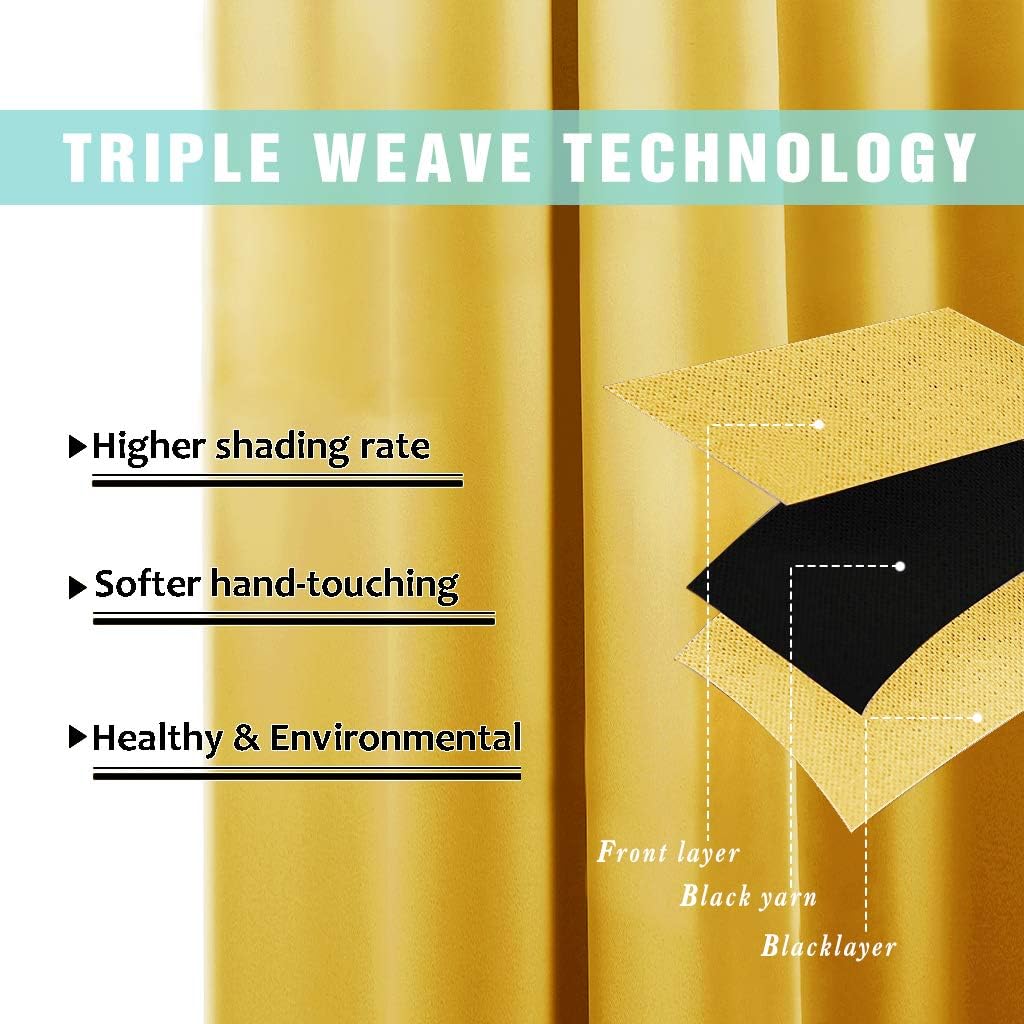 - Unique Design: Draperies constructed with 2 layers are all triple weave blackout fabric, balancing room temperature by insulating against summer heat and winter chill meanwhile protect privacy. No chemical coating, no formaldehyde, bring harmony to your family.