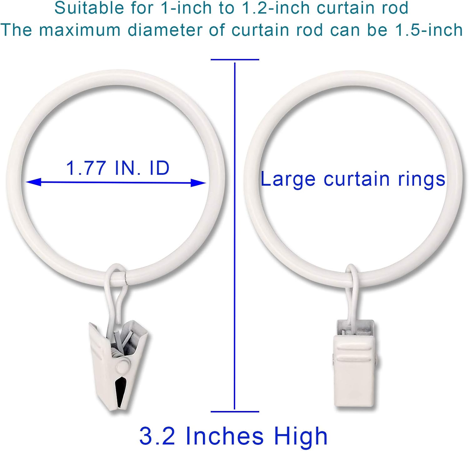 - 【Curtain Rings Slide Easily】Curtain rings eyelet inner diameter 1.77 in, drapery rings with clips for used in ones 1.2 in curtain rod and that’s the perfect size, the curtains slide easily, multiple times a day and function perfectly, make your life full of fun.