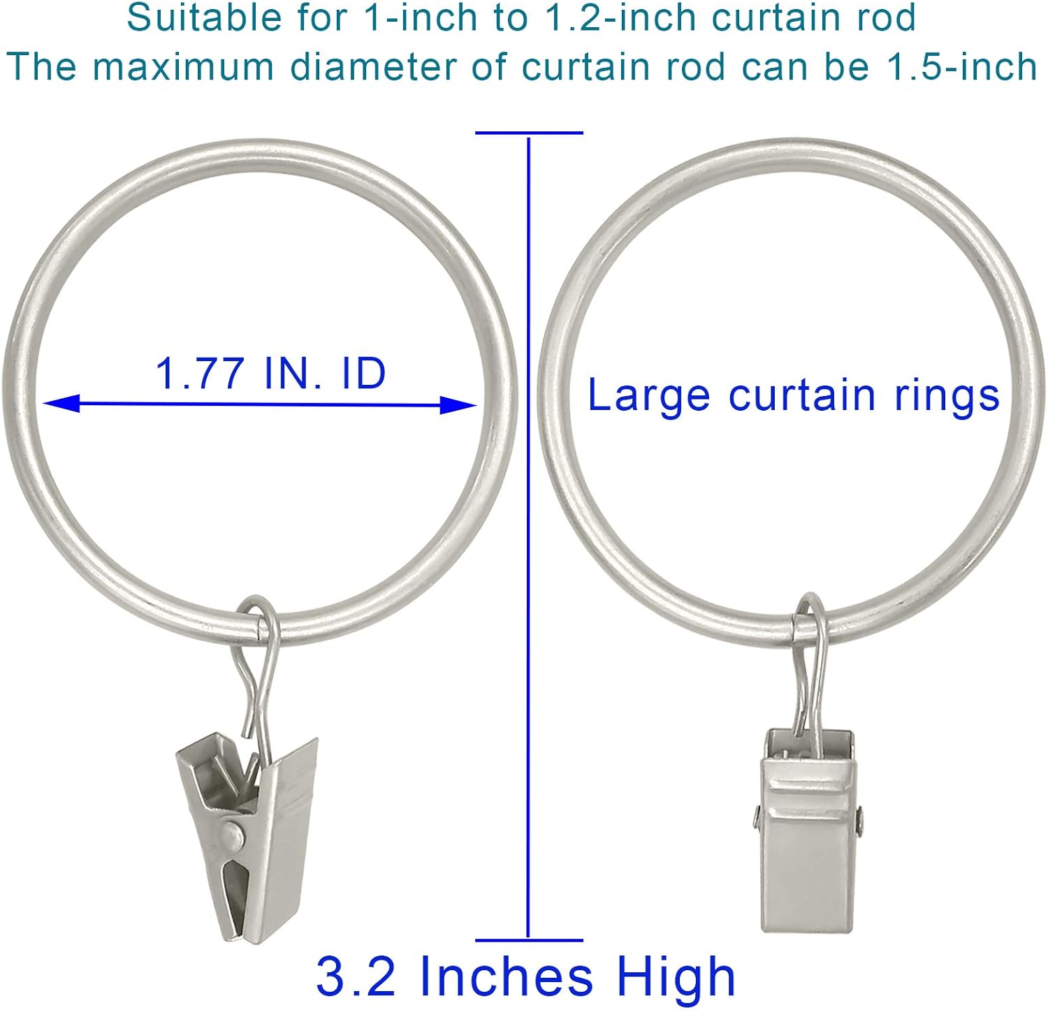 - 【Curtain Rings Slide Easily】Curtain rings eyelet inner diameter 1.77 in, drapery rings with clips for used in ones 1.2 in curtain rod and that’s the perfect size, the curtains slide easily, multiple times a day and function perfectly, make your life full of fun.