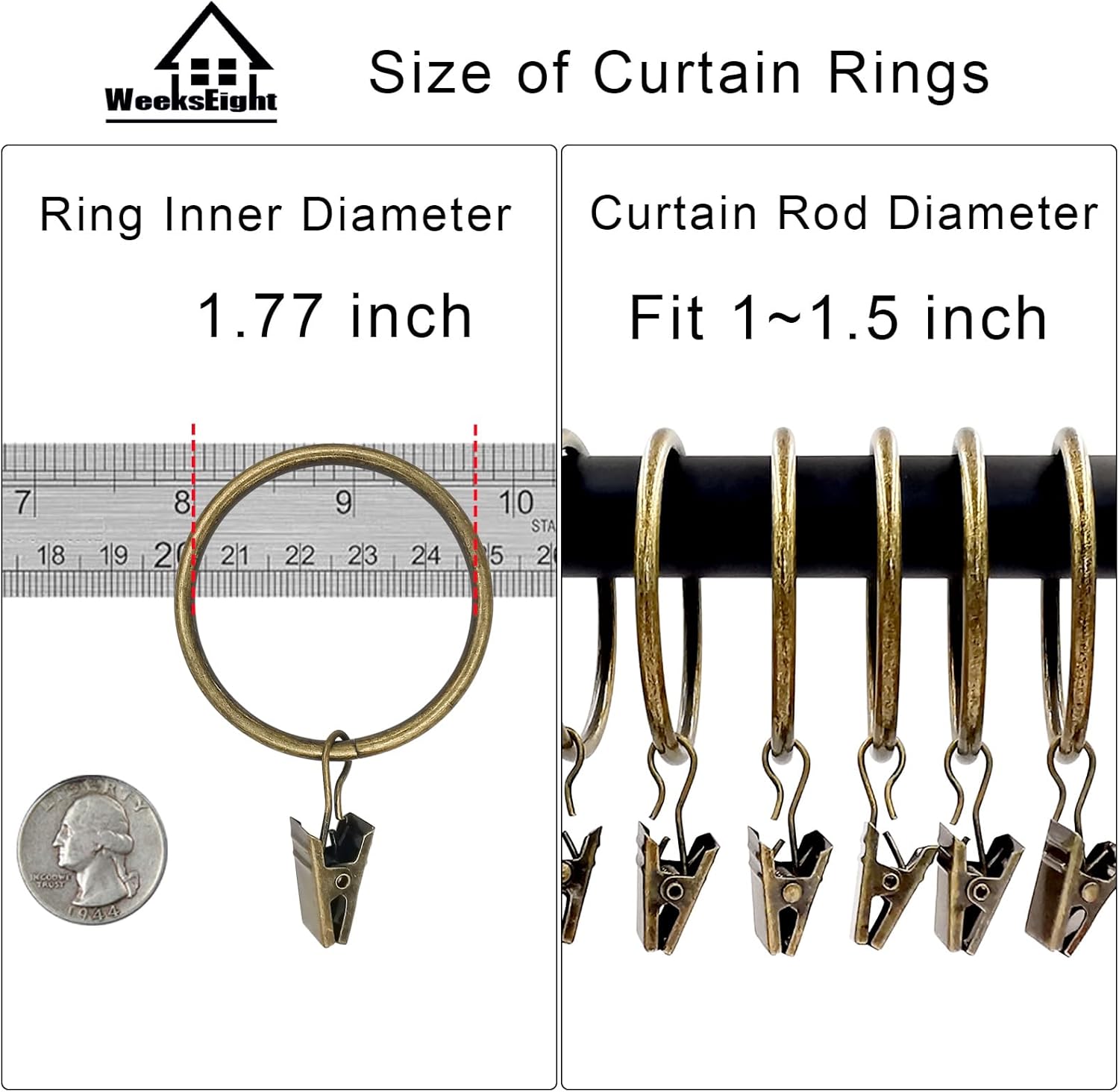 - 【Curtain Rings Slide Easily】Curtain rings eyelet inner diameter 1.77 in, drapery rings with clips for used in ones 1.2 in curtain rod and that’s the perfect size, the curtains slide easily, multiple times a day and function perfectly, make your life full of fun.