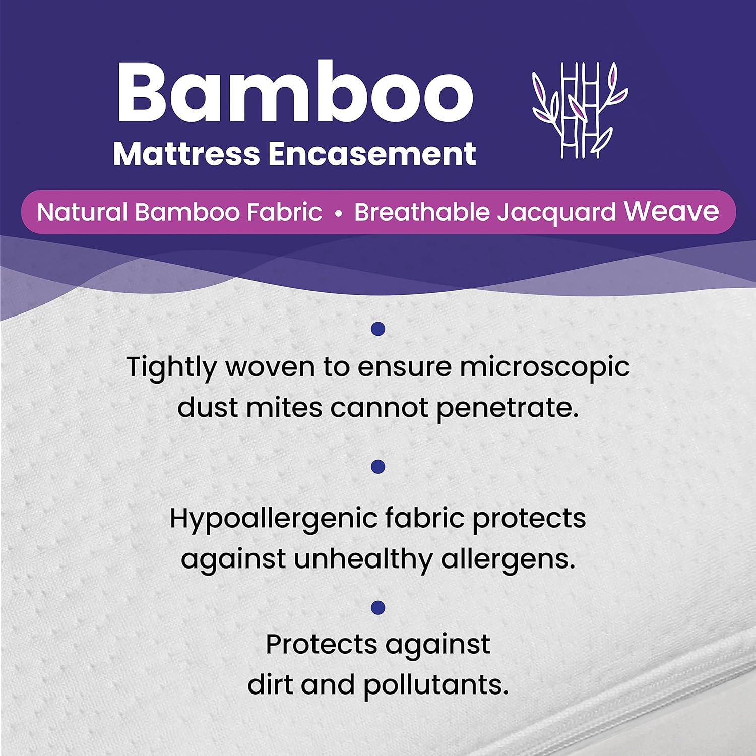 - PREMIUM PROTECTION: Our ultra-breathable bamboo mattress encasement bed bug proof fabric completely surrounds, protects and seals the mattress on all 6 sides, so your mattress is entirely sealed in and out. All-natural hypoallergenic fabric is completely silent, with none of the crinkling sounds you get with a typical mattress protector. Enjoy a sleep experience you simply cannot get anywhere else.