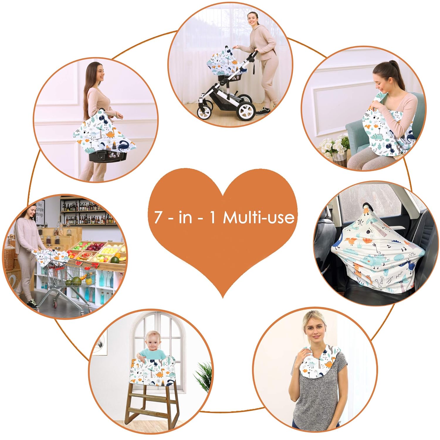 Multi-use Carseat Canopy Cover - Breathable Breastfeeding Covers, Car Seat Covers for Babies, Stroller Canopy Cover (Cute Dinosaur)