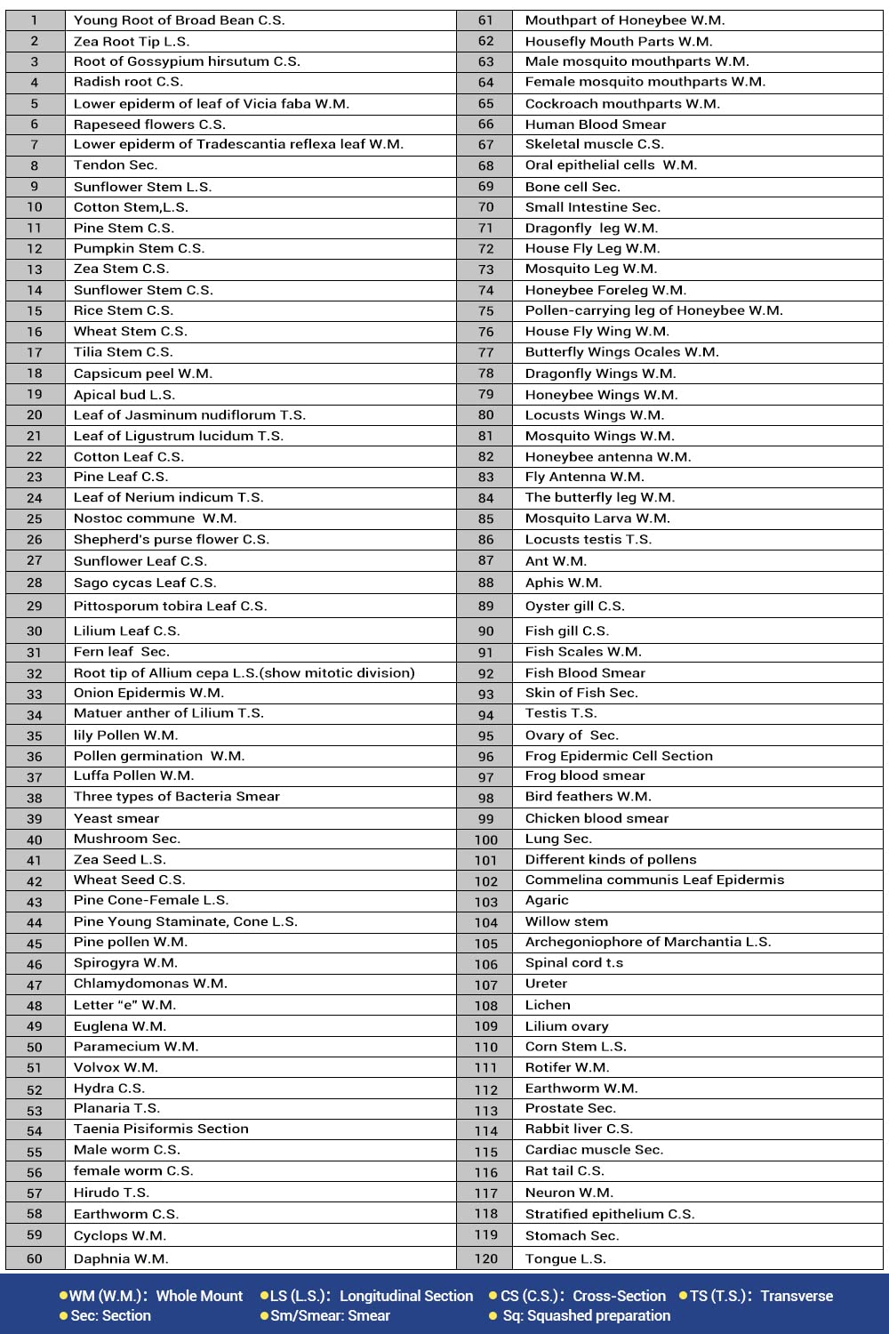 - Set of 120 prepared microscope slides, including plants, insects, and animal tissues, for use in biological education