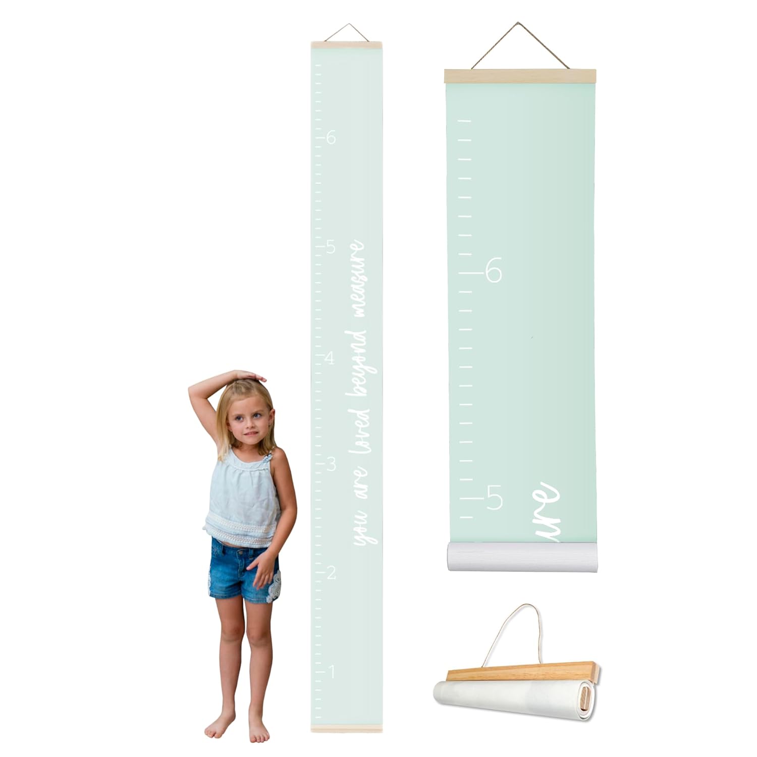 Morxy Canvas Growth Chart for Kids - Unisex Kids Room Wall Decor - Measuring Height Chart- Wall Tape with Height Chart for Kids (Canvas Loved Beyond Measure, Mint Green)