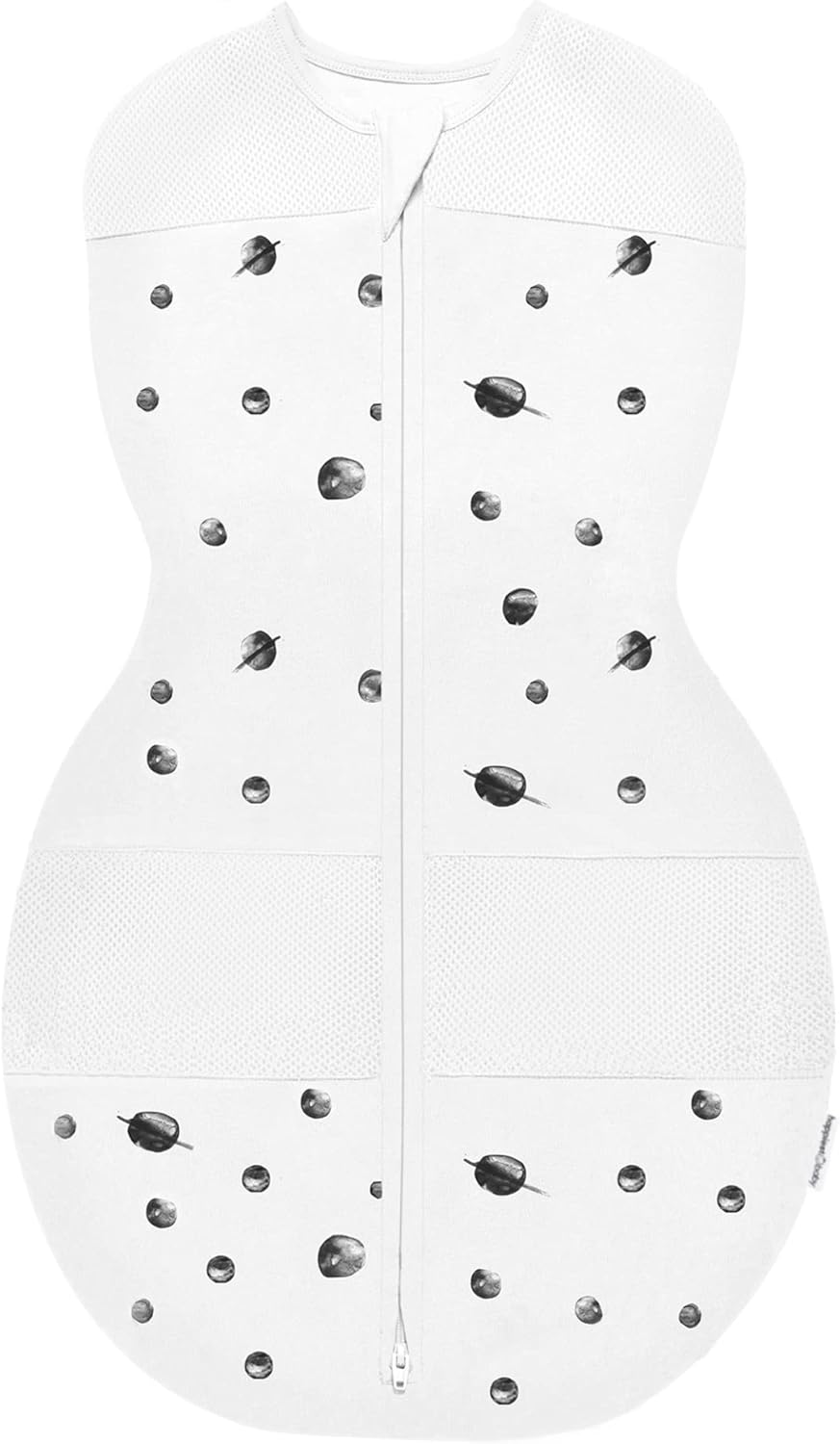 Happiest Baby Sleepea 5-Second Swaddle - 100% Organic Cotton Baby Swaddle Blanket - Doctor Designed Promotes Healthy Hip Development (Ivory Planets, Small)