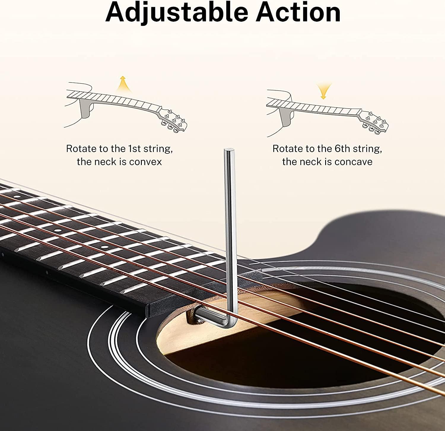- 【HUMANIZED DESIGN】:With phosphor bronze steel strings and high hardness bridge saddle and bone nut, Donner acustic guitar is easy to tune, holds tune and sustains well. Smooth fingerboard and C-shaped neck profile provide smooth operation and a secure, easy-to-grip grip.