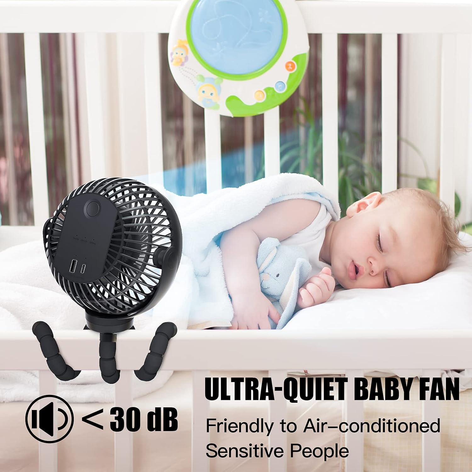 - THREE ADJUSTABLE SPEED, 360° ROTATION, COMPACT, AND LIGHTWEIGHT FAN, FRIENDLY TO MOMMIES AND BABIES: This flexible tripod fan offers complete 360 vertical and horizontal rotations so you can direct the wind at an appropriate speed to any direction you need. The grid openings on the back and front are smaller than others, no need for concerns of little fingers making their way through the back of the fan to touch the blades.