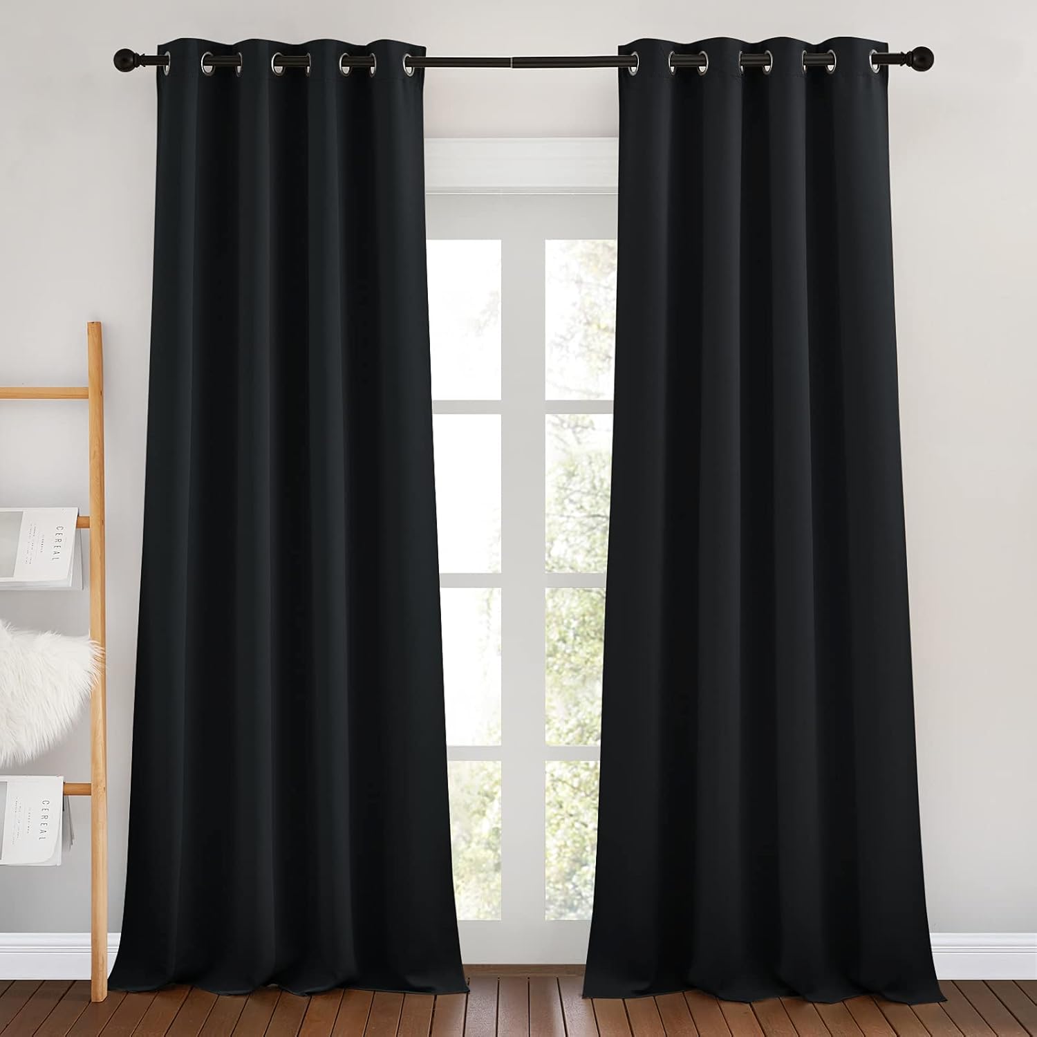 NICETOWN Patio Blackout Curtain Panels - Thermal Insulated Grommet Blackout Drapes Light Blinds Room Darkening Window Treatments for Villa/Cottage (2 Panels, W46 x L90, Black)