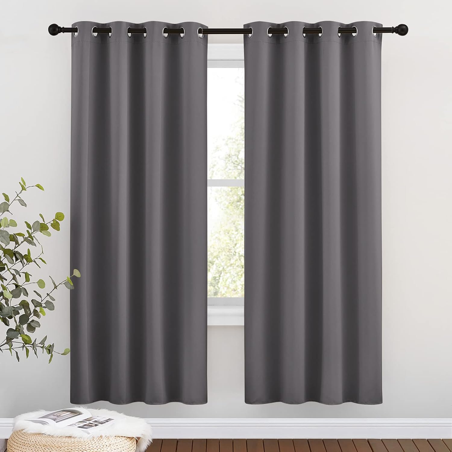 NICETOWN Blackout Window Curtains 72" L - Grommet Top Room Darkening Thermal Insulated Vertical Window Drapes Modern for Flat/Apartment (2 Panels, 46 x 72 Inch, Grey)