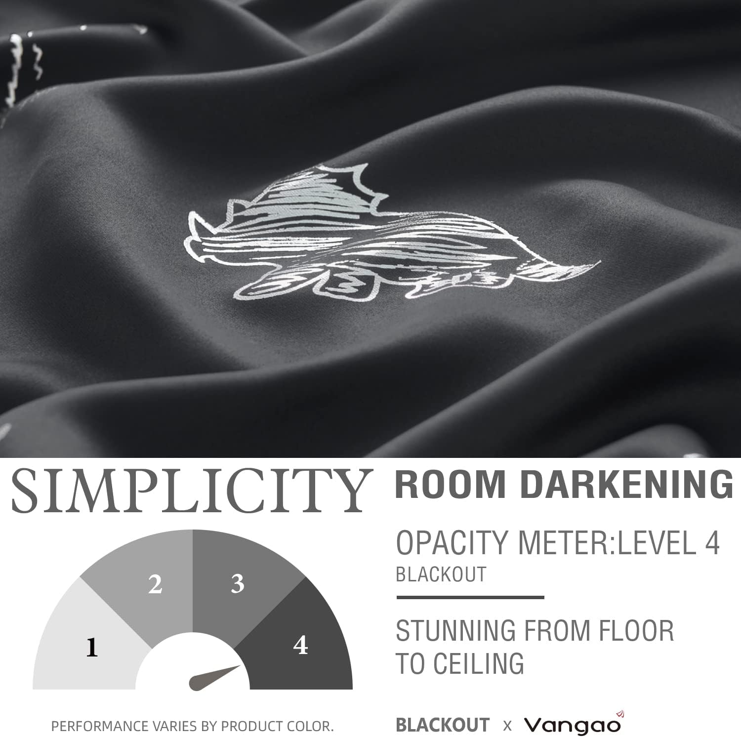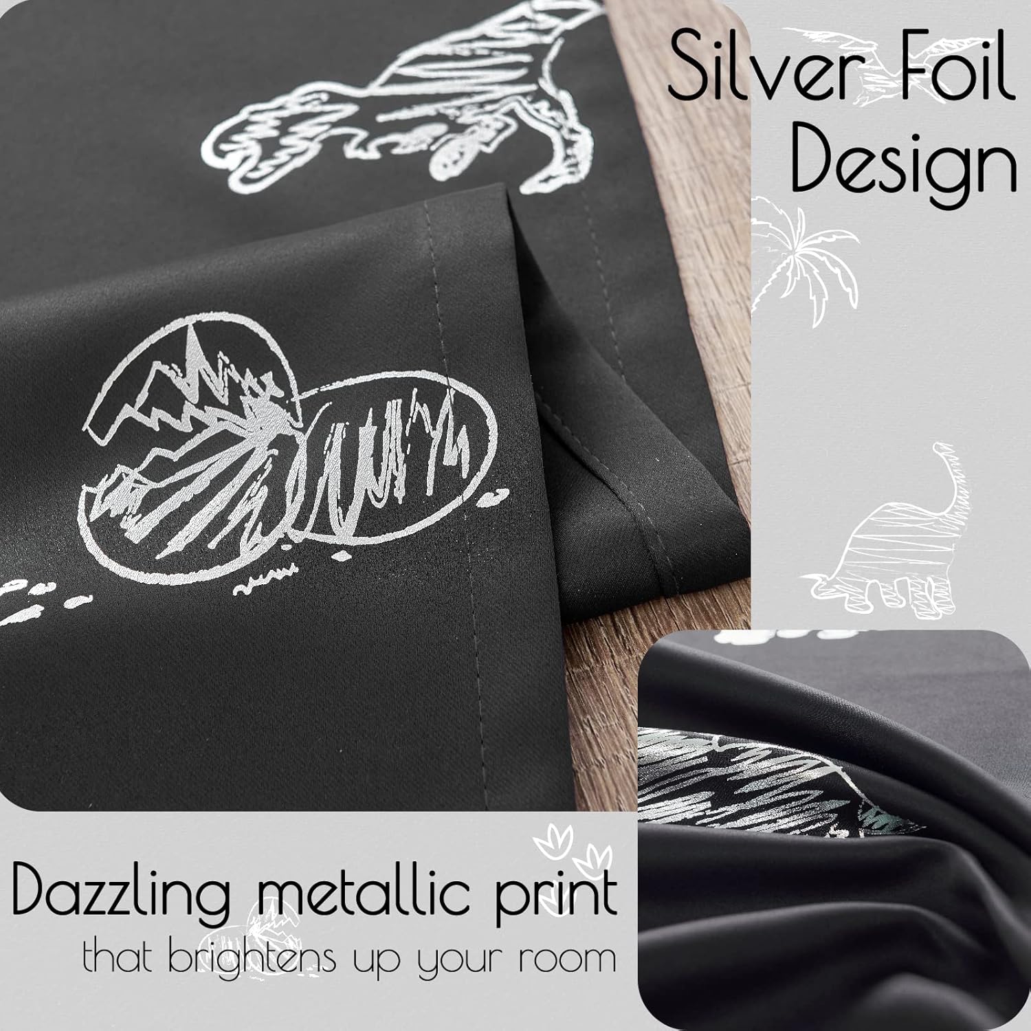 Vangao Kids Curtains Black Blackout Dinosaur Curtains for Boys Kids Nursery Girls Room Silver Dino Foil Print Thermal Insulated Drapes Grommet Top Window Treatments 63 Inches Length 2 Panels