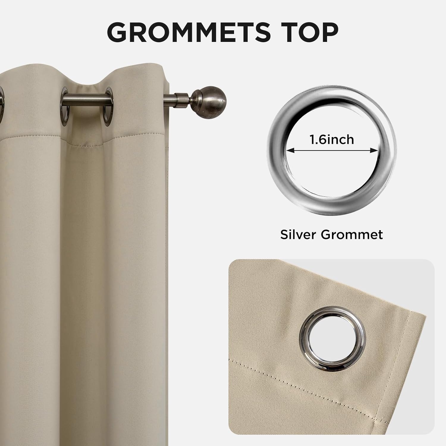 Joydeco Beige Curtains 95 Inches Long 2 Panels Set, Thermal Insulated Long Curtains& Drapes 2 Burg, Room Darkening Grommet Drapes for Living Room Bedroom Window (W52 x L95 Inch, Light Beige)