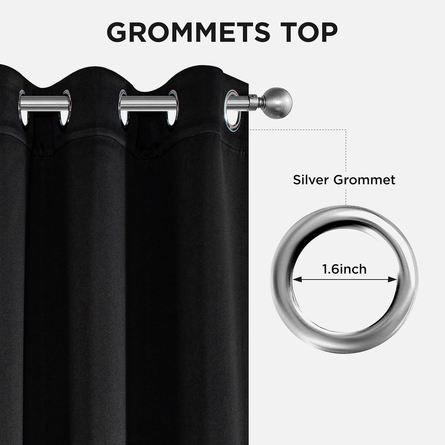 Joydeco Blackout Curtains 108 Inch Length 2 Panels Set, Thermal Insulated Long Curtains& Drapes 2 Burg, Room Darkening Grommet Drapes for Living Room Bedroom Window (W52 x L108 Inch, Black)