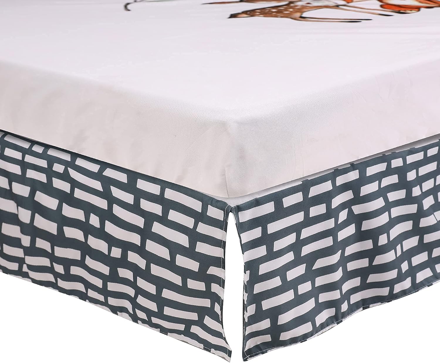 - SAFE FIT: Measuring 28” x 52” with 14’’ drop, this crib bedding set fits perfectly on all standard cribs and most toddler beds. The length is long enough to discreetly hide storage under the crib. Finished with 4 split corners to make placement around crib posts easy and make changing and washing stress free.