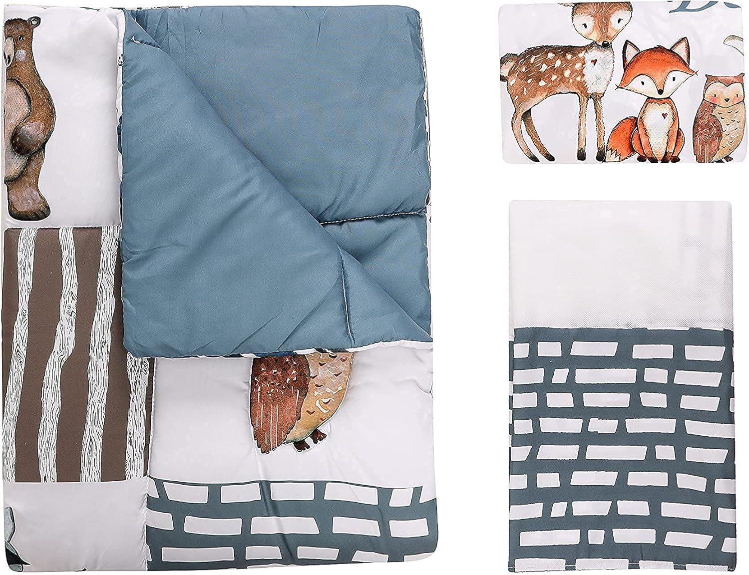 PINNKKU 3-Piece Crib Bedding Set for Boys, Includes Crib Skirt, Blanket, Sheet, Woodland Animals, Standard Size
