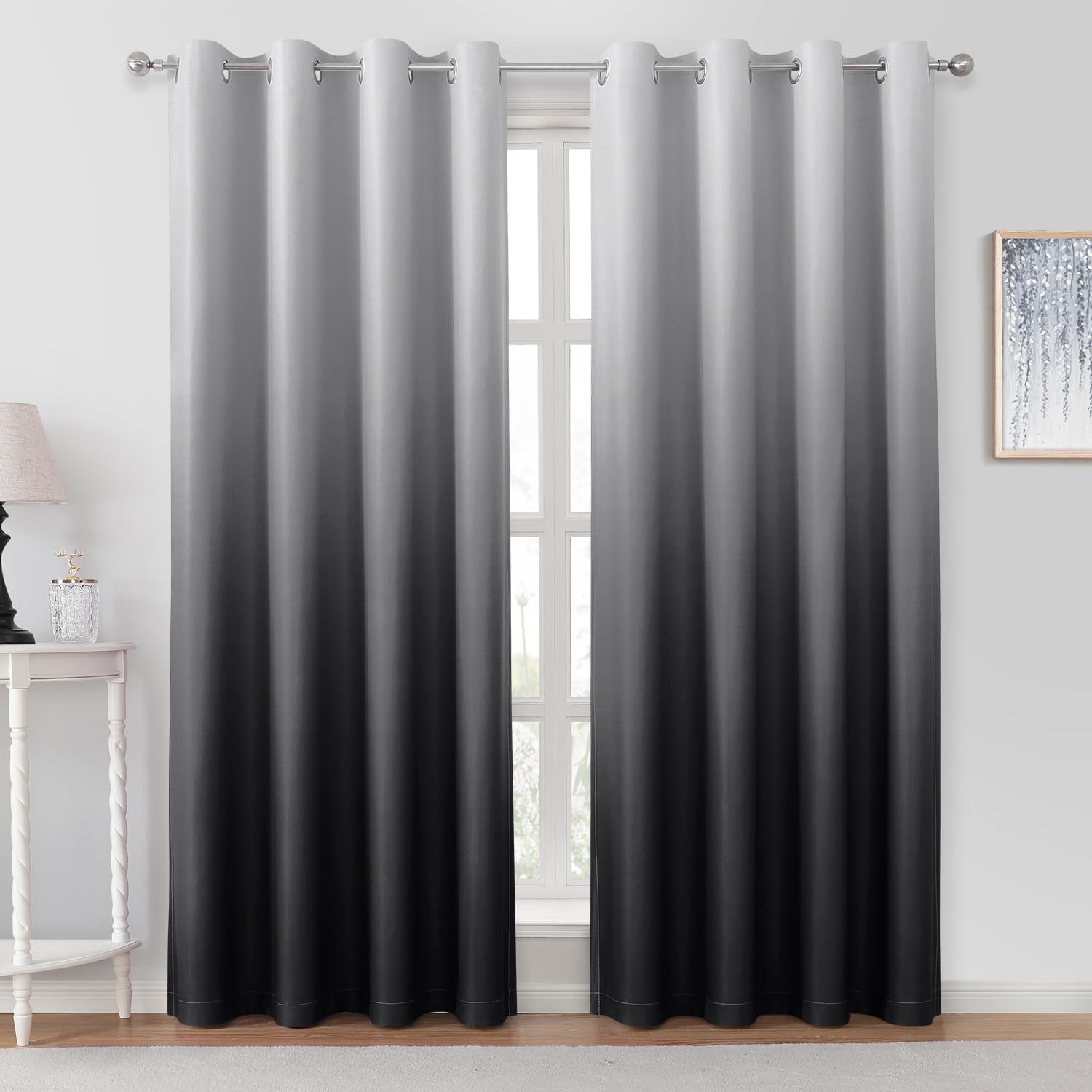 HOMEIDEAS Black Ombre Blackout Curtains 52 X 96 Inch Length Gradient Room Darkening Thermal Insulated Energy Saving Grommet 2 Panels Window Drapes for Living Room, Bedroom