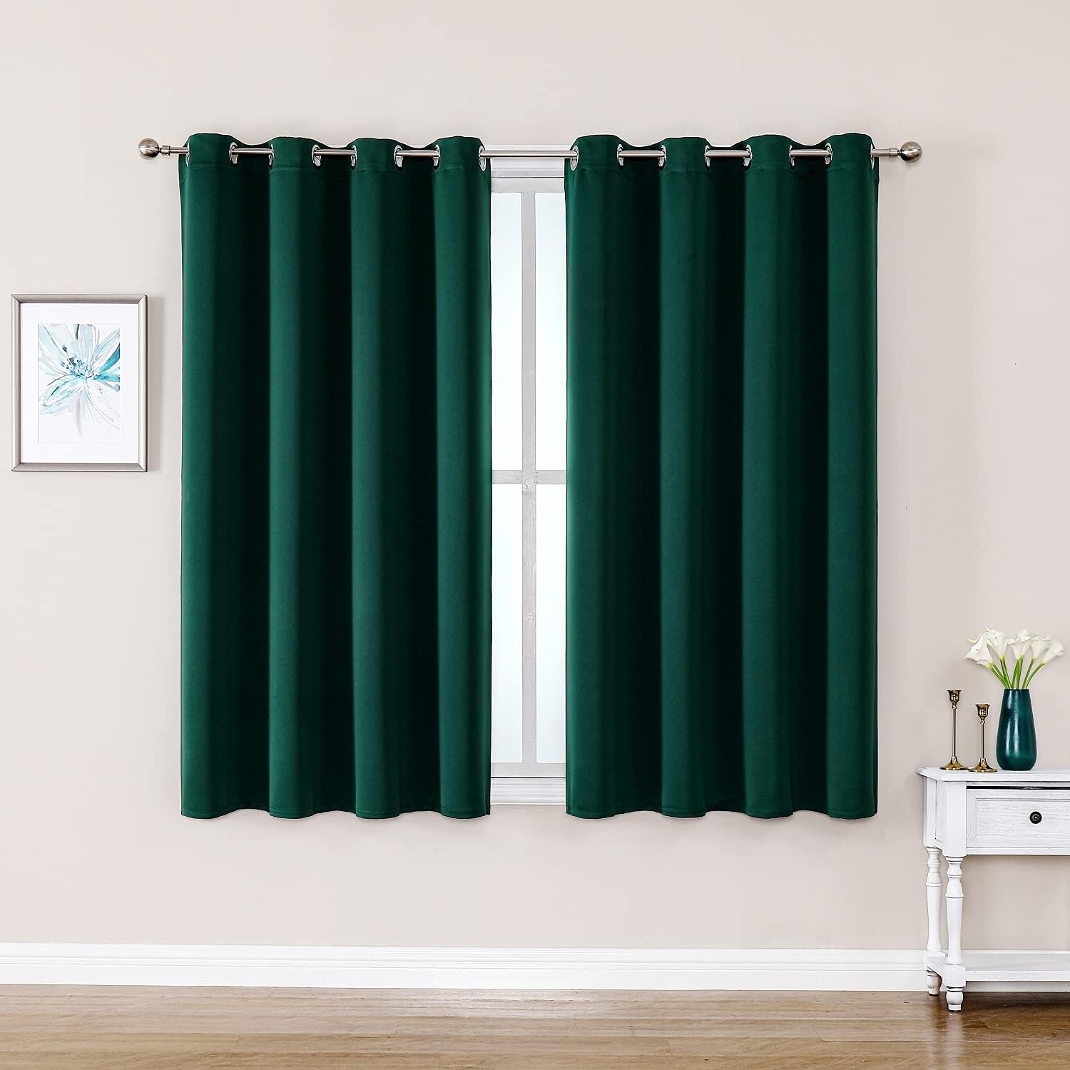 ChrisDowa Grommet Blackout Curtains for Bedroom and Living Room - 2 Panels Set Thermal Insulated Room Darkening Curtains (Forest Green, 52W x 45L)