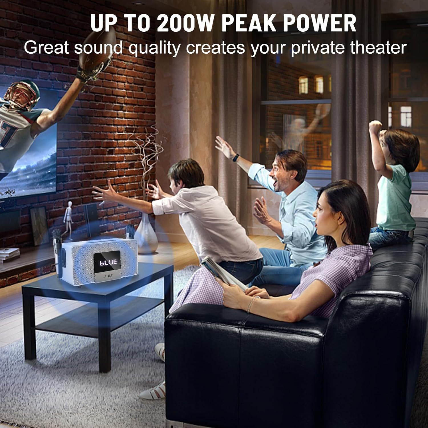 - 【Stylish appearance, a perfect match for the home】: Say goodbye to the bulky traditional karaoke speakers, everything is simple, very easy to install, plug and play, small size does not take up space, fits pretty much anywhere, and it perfectly matches the furniture, making the living room more clean and tidy. Notice: This machine is designed for indoor use so it doesn't contain a battery, and can only use with the power adapter