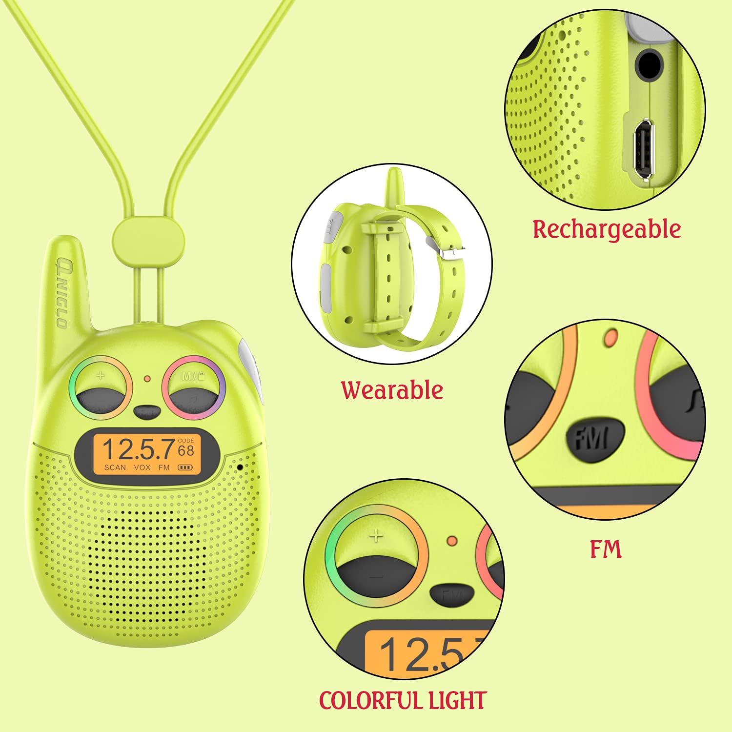 - 𝗣𝗲𝗿𝗳𝗲𝗰𝘁 𝗚𝗶𝗳𝘁𝘀 𝗳𝗼𝗿 𝗞𝗶𝗱𝘀: Qniglo walkie talkies for kids rechargeable come in adorable colors and are well packaged in a stylish gift box, look attractive to kids. Excellent color box design makes it a wonderful birthday gift, Easter gifts, Valentine's gifts, Children's Day gifts, and Christmas gifts for 3 4 5 6 7 8 9 10 11 12-year-old girls, boys, or family group outdoor games like hiking, camping, traveling.