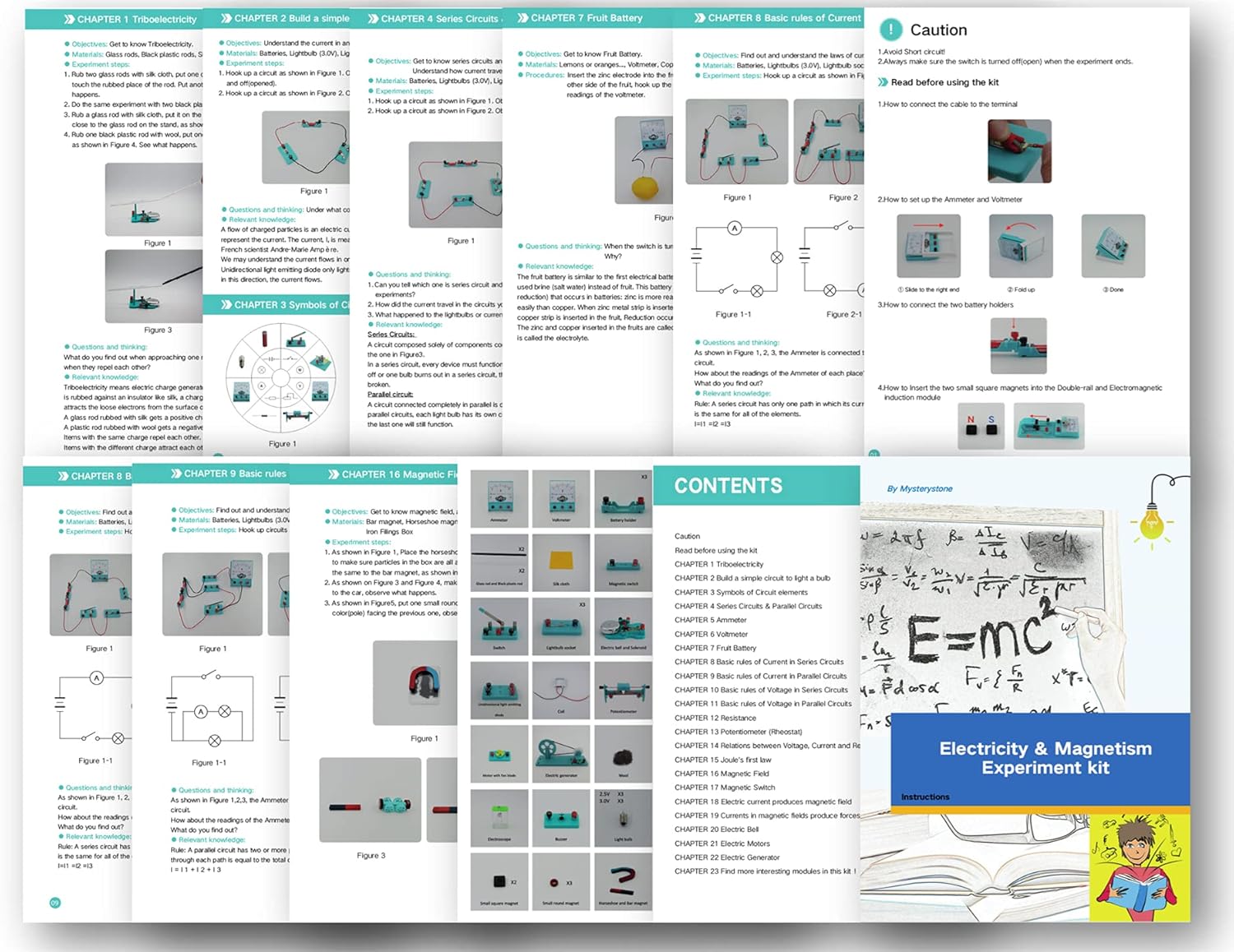 - 📢The Most Complete Bundle for Electricity & Magnetism Learning!Find more unique items in this kit,such as Light control led, Magnetic switch, Joule's first law experiment module... ✈️Give your kids an interesting, hands-on introduction to Electricity and Magnetism with this physics gifts. This set offers more than 50 do-it-yourself experiments that will give your child an entertaining, concrete education on how electronics and magnetism work.